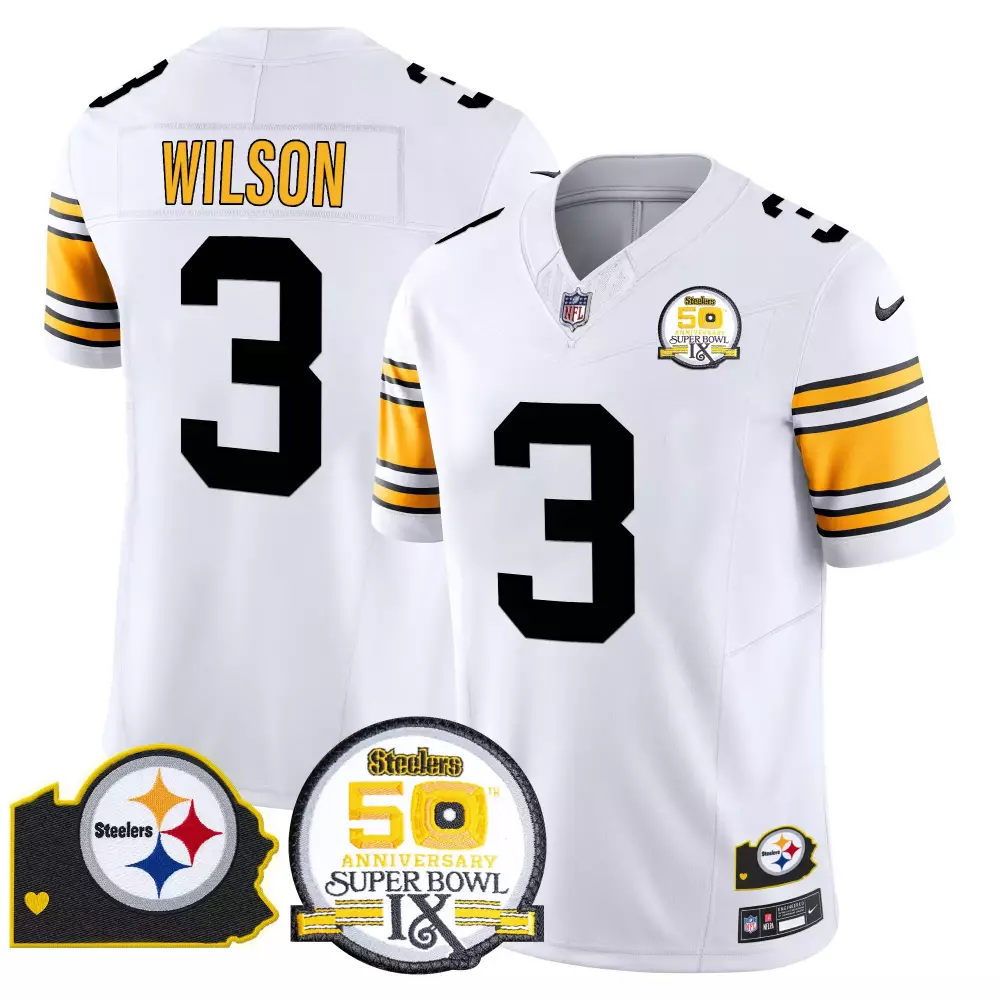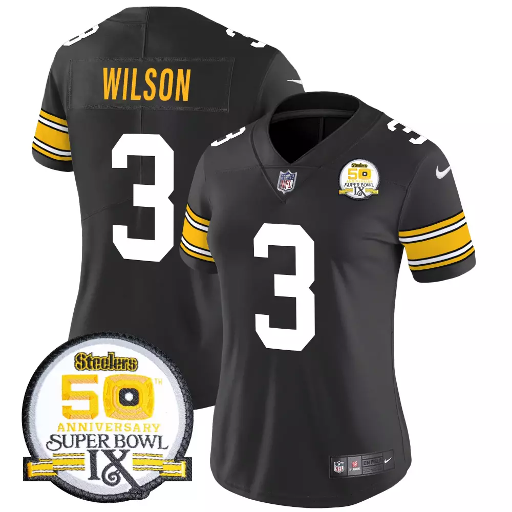Russell Wilson 1975 Throwback Men’s Pittsburgh Steelers Vapor Limited Jersey | 2024 Edition | For Men;Russell Wilson 1975 Throwback Women’s Pittsburgh Steelers 50th Anniversary Vapor Limited Jersey | For Women;Russell Wilson 1975 Throwback Women’s Pittsburgh Steelers Vapor Limited Jersey | Stitched Design | Fan Gear for Game Day | For Men, Women & Youth;Russell Wilson 1975 White Men’s Pittsburgh Steelers 50th Anniversary Game Jersey | Super Bowl IX Patch | Stitched Fan Gear | For Men, Women & Youth;Russell Wilson 1975 White Men’s Pittsburgh Steelers 50th Anniversary Vapor Limited Jersey | Super Bowl IX Patch | For Men, Women & Youth