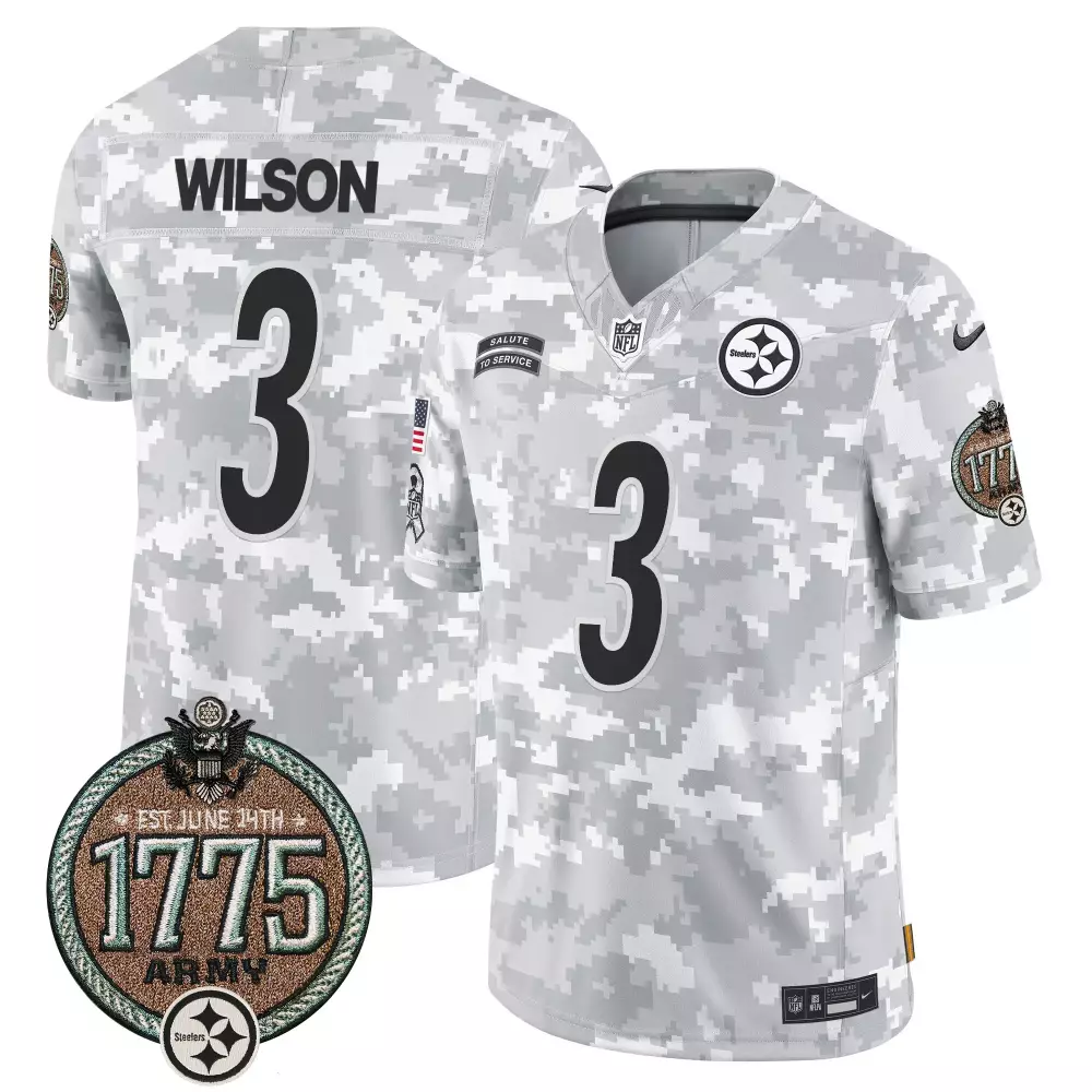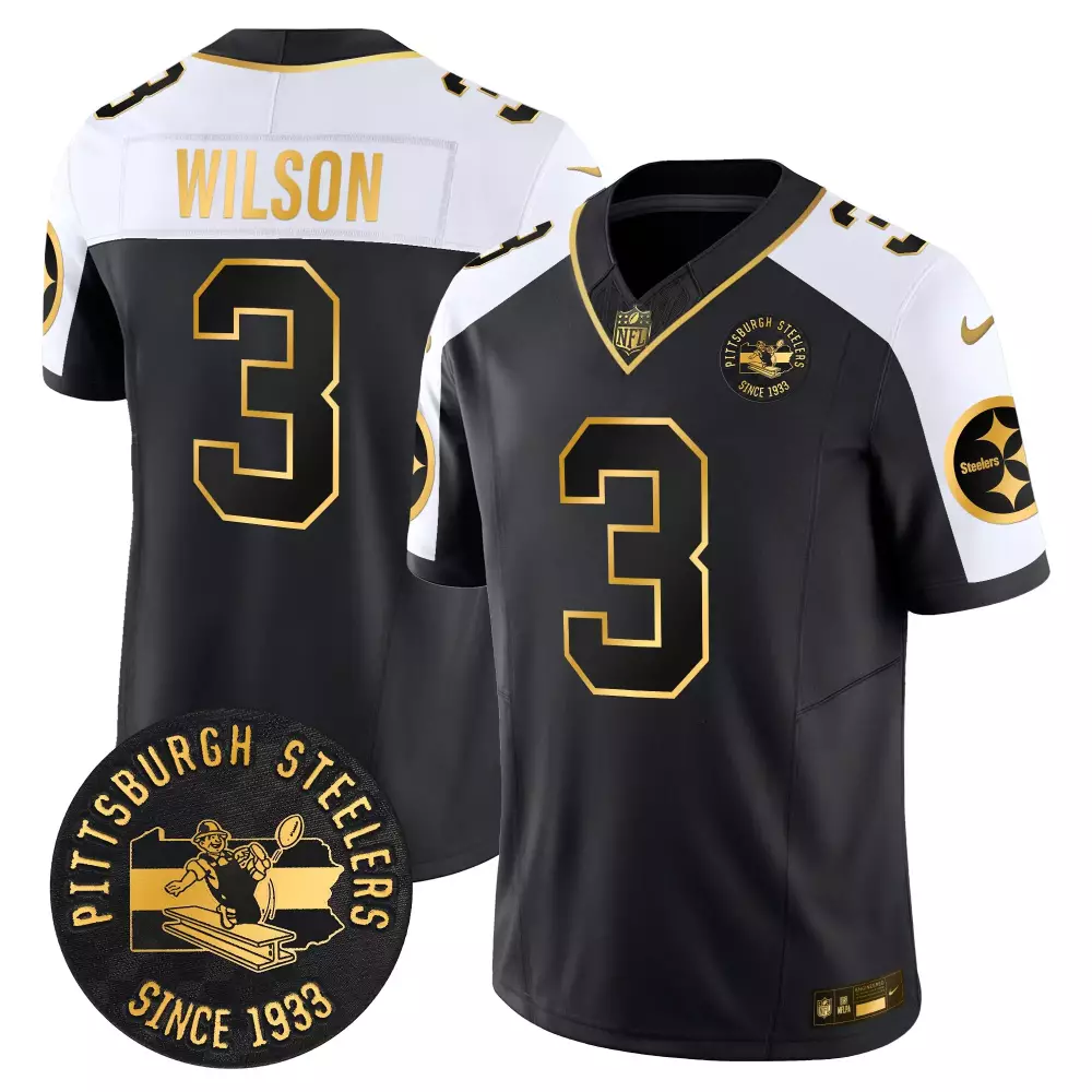 Russell Wilson Alternate Men’s Pittsburgh Steelers Home Patch Gold Vapor Jersey | Stitched Design | For Men, Women & Youth;Russell Wilson Alternate Men’s Pittsburgh Steelers Throwback 1933 Patch Gold Vapor Limited Jersey | Stitched Design | For Men, Women & Youth;Russell Wilson Alternate Women’s Pittsburgh Steelers Arch Smoke Home Patch Vapor Jersey | Stitched Design | For Men, Women & Youth;Russell Wilson Alternate Women’s Pittsburgh Steelers Arch Smoke Vapor Jersey | Stitched Design | For Men, Women & Youth;Russell Wilson Army Men’s Pittsburgh Steelers 2024 Salute to Service Vapor Limited Jersey | Establishment Year Patch | For Men, Women & Youth