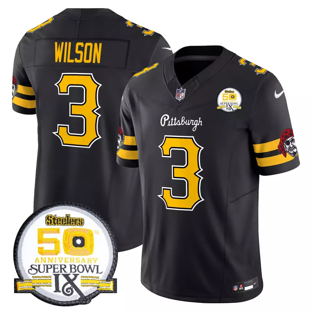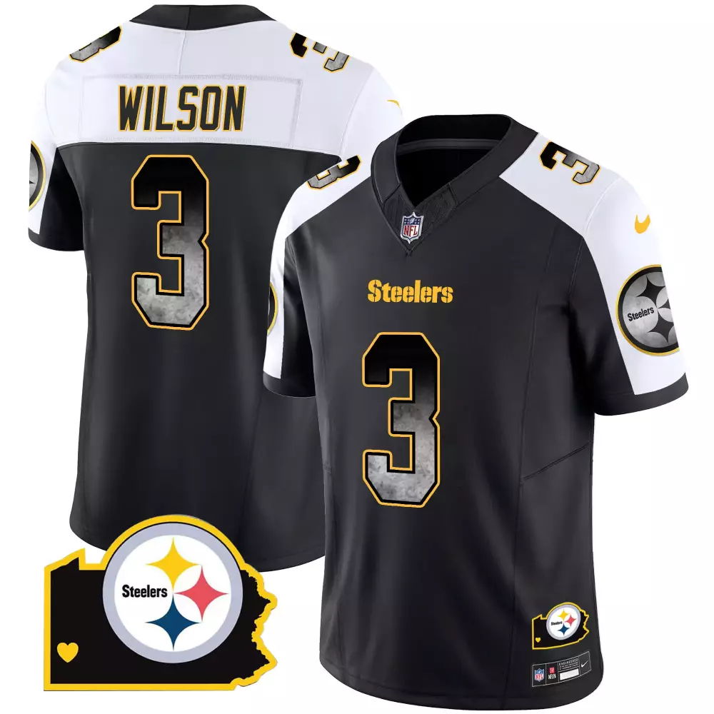 Russell Wilson Black Limited Men’s Pittsburgh Steelers Throwback 1933 Patch Gold Vapor Limited Jersey | Stitched Design | For Men, Women & Youth;Russell Wilson Black Men’s Pittsburgh Steelers 2024 Vapor Limited Jersey | Est 1933 Patch | Stitched Design | For Men, Women & Youth;Russell Wilson Black Men’s Pittsburgh Steelers 2024 Vapor Limited Jersey | Stitched Design | For Men, Women & Youth;Russell Wilson Men’s Pittsburgh Steelers Arch Smoke Home Patch Vapor Jersey | Stitched Fan Gear | For Men, Women & Youth;Russell Wilson Men’s Pittsburgh Steelers Arch Smoke Vapor Jersey | Stitched Fan Gear | For Men, Women & Youth