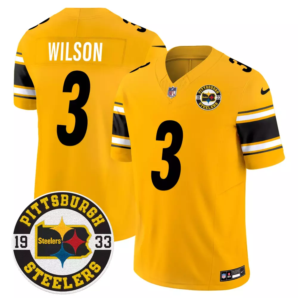 Russell Wilson Pittsburgh Steelers Color Rush 80th Anniversary Vapor Limited Jersey | Black Men’s All Stitched | For Men, Women & Youth;Russell Wilson Pittsburgh Steelers Gold 2024 Vapor Limited Jersey | Black Men’s All Stitched | For Men, Women & Youth;Russell Wilson Pittsburgh Steelers Gold 2024 Vapor Limited Jersey | Black Men’s All Stitched | For Men, Women & Youth;Russell Wilson Pittsburgh Steelers Gold Alternate 2024 Vapor Limited Jersey | Black Men’s All Stitched | For Men, Women & Youth;Russell Wilson Pittsburgh Steelers Gold Arch Smoke Home Patch Vapor Jersey | Custom Stitched Limited Edition | Fan Gear for Men, Women & Youth
