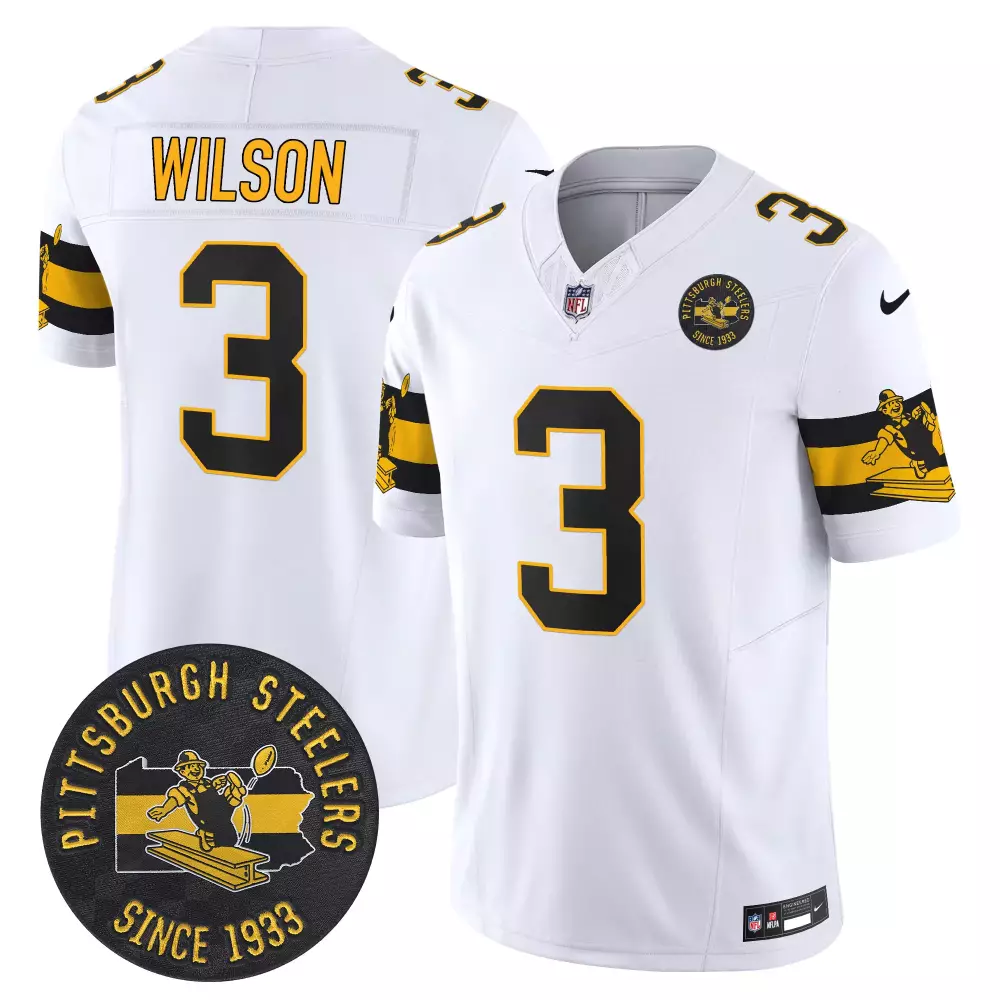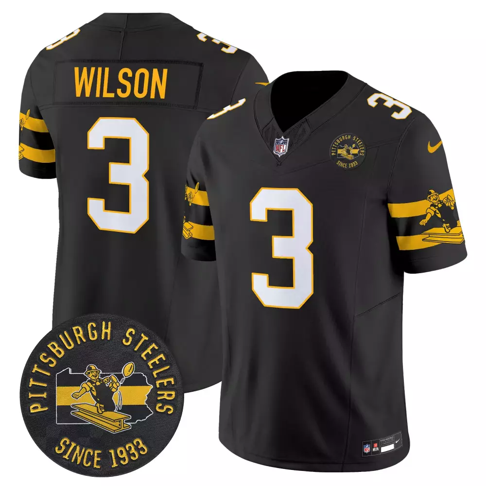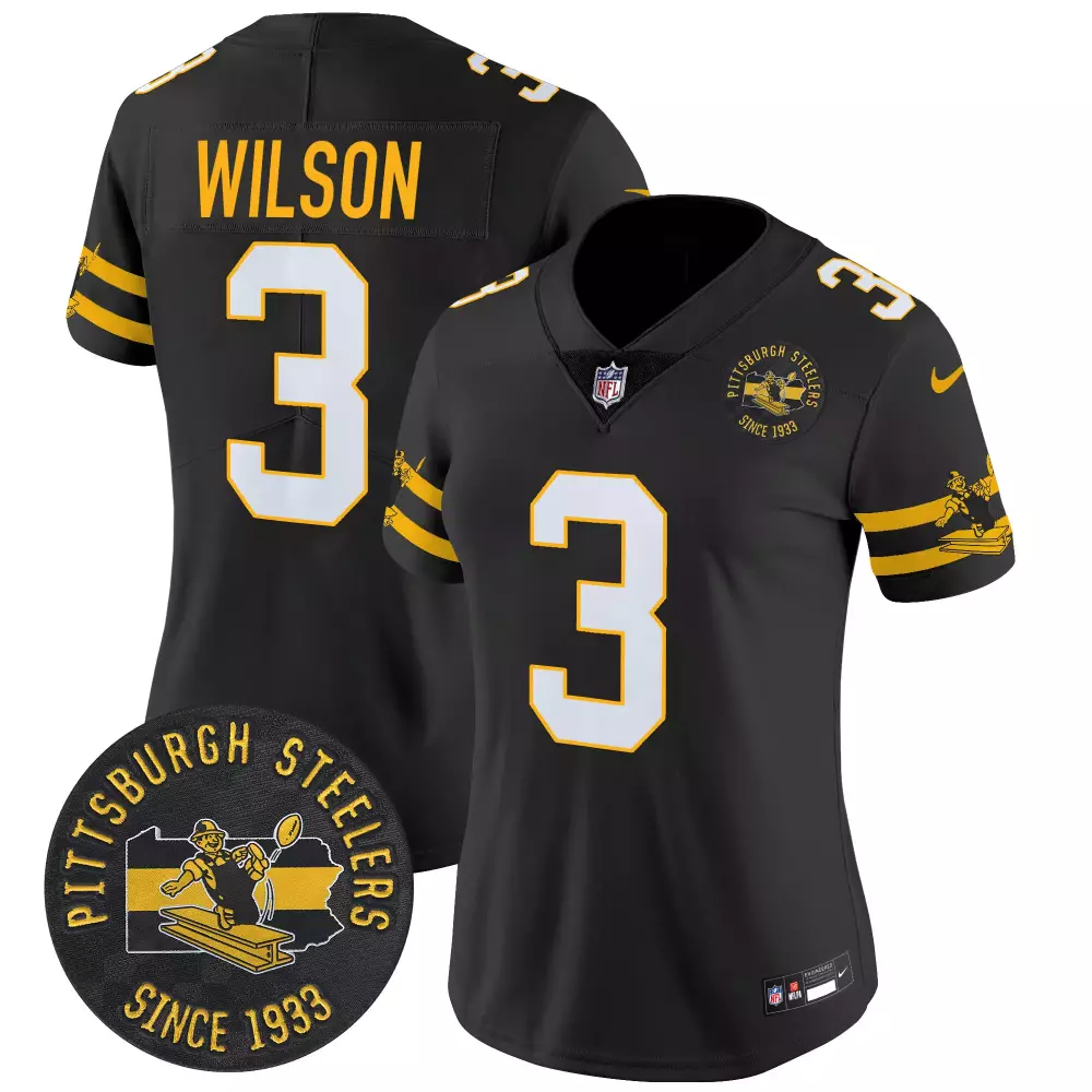 Russell Wilson Pittsburgh Steelers Super Bowl IX Vapor Limited Jersey V2 | Black All Stitched | For Men, Women & Youth;Russell Wilson Pittsburgh Steelers Throwback 1933 Patch Vapor Limited Jersey | White for Women | Fan Gear for All;Russell Wilson Pittsburgh Steelers Throwback 1933 Patch Vapor Limited Jersey | White Stitched Design | Fan Gear for All;Russell Wilson Pittsburgh Steelers Throwback 1933 Vapor Limited Jersey | Black All Stitched | For Men, Women & Youth;Russell Wilson Pittsburgh Steelers Throwback 1933 Vapor Limited Jersey | Black Women’s All Stitched | For Women & Youth