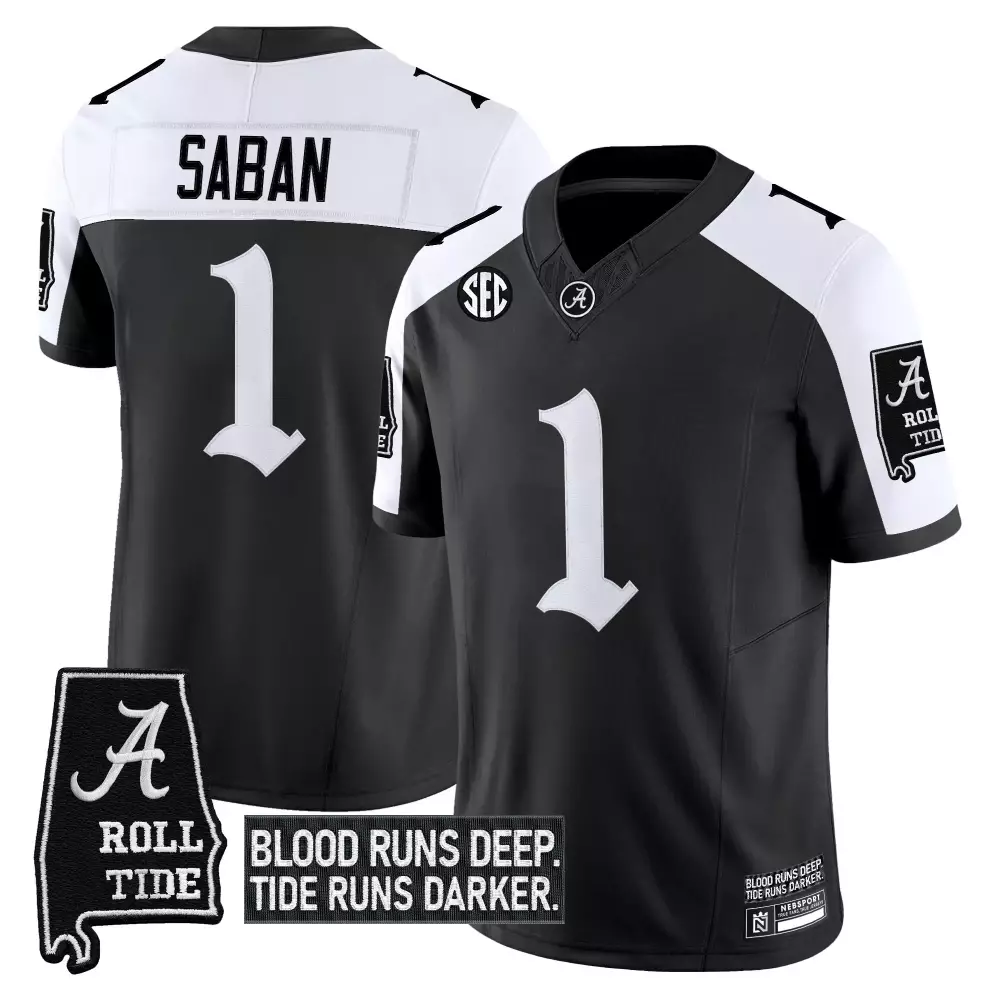 Saban 1 Alabama Crimson Tide 2025 Vapor Limited Jersey | White Stitched with Embroidered Patches | For Men, Women & Youth;Saban 1 Alabama Crimson Tide 2025 Vapor Stitched Jersey | Crimson SEC Patch | Game Day Outfit for Men, Women & Youth;Saban 1 Alabama Crimson Tide Black Stitched Jersey | Name Patch 2023 | For Men, Women & Youth;Saban 1 Alabama Crimson Tide Black Stitched Jersey | With Name Patch 2025 | For Men, Women & Youth;Saban 1 Alabama Crimson Tide Black Vapor Jersey | Blood Runs Deep Patch 2023 | Fan Gear for Men, Women & Youth
