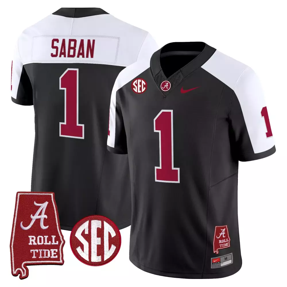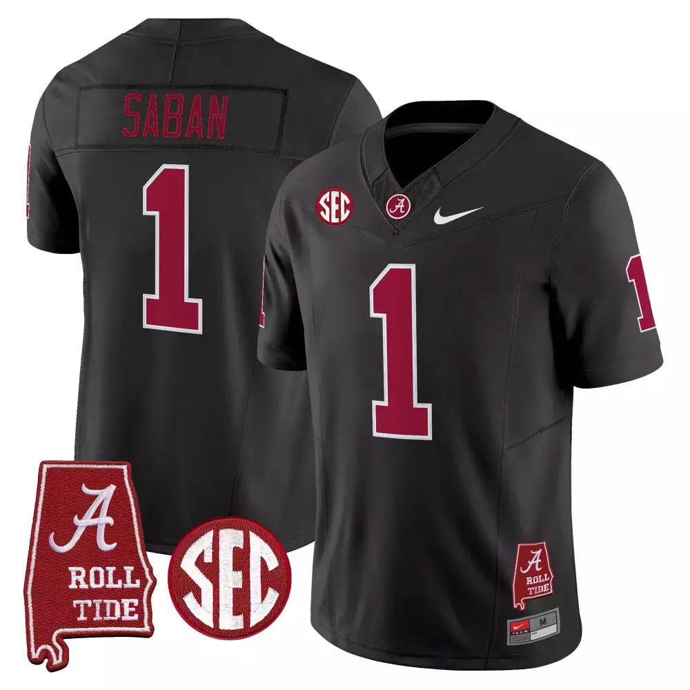 Saban 1 Alabama Crimson Tide Black Vapor Limited Jersey | Embroidered Patches 2025 | For Men, Women & Youth;Saban 1 Alabama Crimson Tide Stitched Jersey | 2023 SEC Name Patch Maroon | For Men, Women & Youth;Saban 1 Alabama Crimson Tide Stitched Jersey | Black 2023 Name Patch | For Men, Women & Youth;Saban 1 Alabama Crimson Tide Stitched Jersey | Black 2023 SEC Patch | Game Day Outfit for Men, Women & Youth;Saban 1 Alabama Crimson Tide Stitched Jersey | White 2023 SEC Patch | For Men, Women & Youth