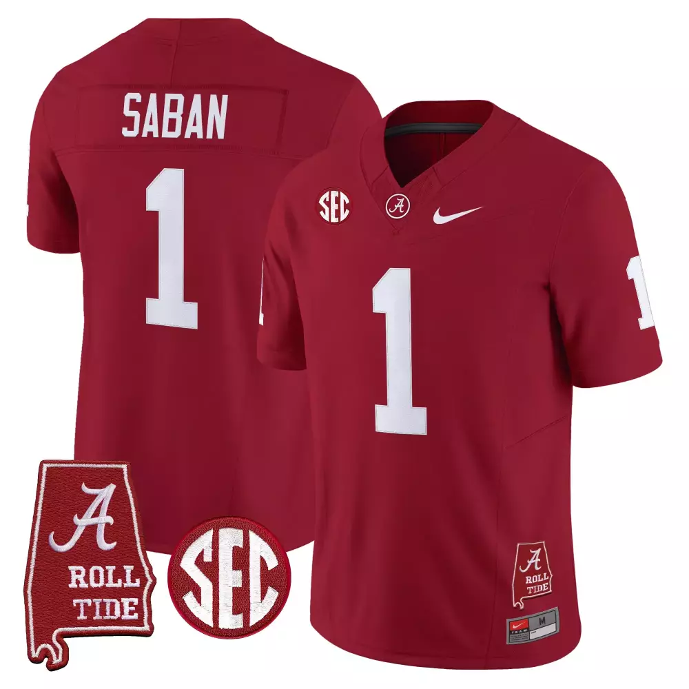 Saban 1 Alabama Crimson Tide Stitched Vapor Jersey | 2021 Roll Tide Patch Crimson | For Men, Women & Youth;Saban 1 Alabama Crimson Tide Stitched Vapor Jersey | 2021 Roll Tide Patch Crimson | For Men, Women & Youth;Saban 1 Alabama Crimson Tide Stitched Vapor Jersey | 2023 SEC Embroidered Patch | For Men, Women & Youth;Saban 1 Alabama Crimson Tide Stitched Vapor Jersey | White 2023 Blood Runs Deep Edition | For Men, Women & Youth;Saban 1 Alabama Crimson Tide Stitched Vapor Jersey | White 2025 SEC Patch | For Men, Women & Youth