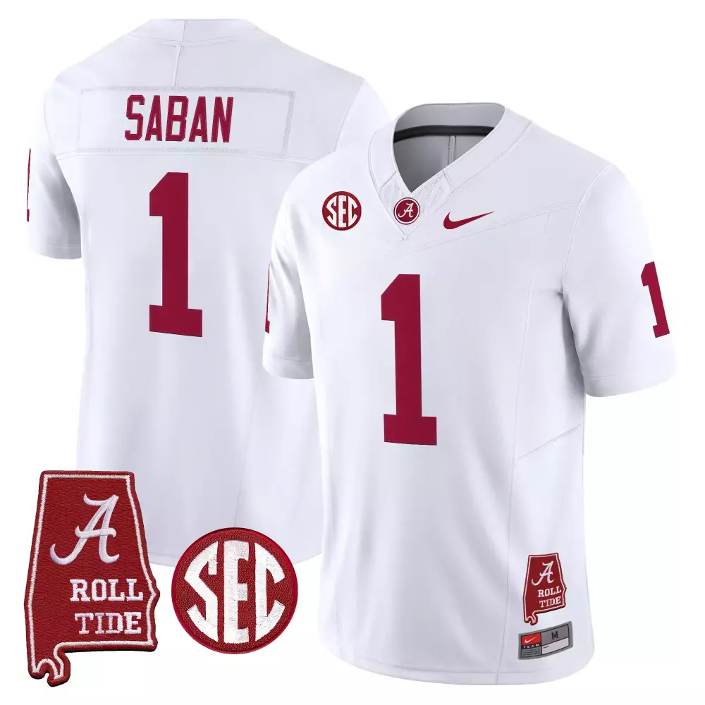Saban 1 Alabama Crimson Tide Vapor Jersey | Black Stitched 2023 Embroidered Patch | For Men, Women & Youth;Saban 1 Alabama Crimson Tide Vapor Limited Jersey | Black 2023 with Embroidered Patches | For Men, Women & Youth;Saban 1 Alabama Crimson Tide Vapor Limited Jersey | White 2023 SEC Patch | Game Day Outfit for Men, Women & Youth;Saban 1 Alabama Crimson Tide Vapor Stitched Jersey | Black 2023 SEC Patch | For Men, Women & Youth;Saban 1 Alabama Crimson Tide White Stitched Jersey | With Name Patch 2023 | For Men, Women & Youth