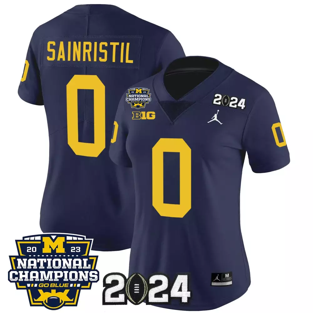 Sainristil Michigan Wolverines 2023 National Champions Navy Jersey | Stitched Vapor Style | Limited Edition Fan Gear | For Men, Women & Youth;Sainristil Michigan Wolverines 2023 National Champions Navy Jersey | Stitched Vapor Style | Replica Fan Gear | For Men, Women & Youth;Sainristil Michigan Wolverines 2023 National Champions Navy Jersey | Stitched Vapor Style | Replica Fan Gear | For Men, Women & Youth;Sainristil Michigan Wolverines 2023 National Champions Split Jersey | Stitched Vapor Style | Limited Edition Fan Gear | For Men, Women & Youth;Sainristil Michigan Wolverines 2023 National Champions Split Jersey | Stitched Vapor Style | Limited Edition Fan Gear | For Men, Women & Youth
