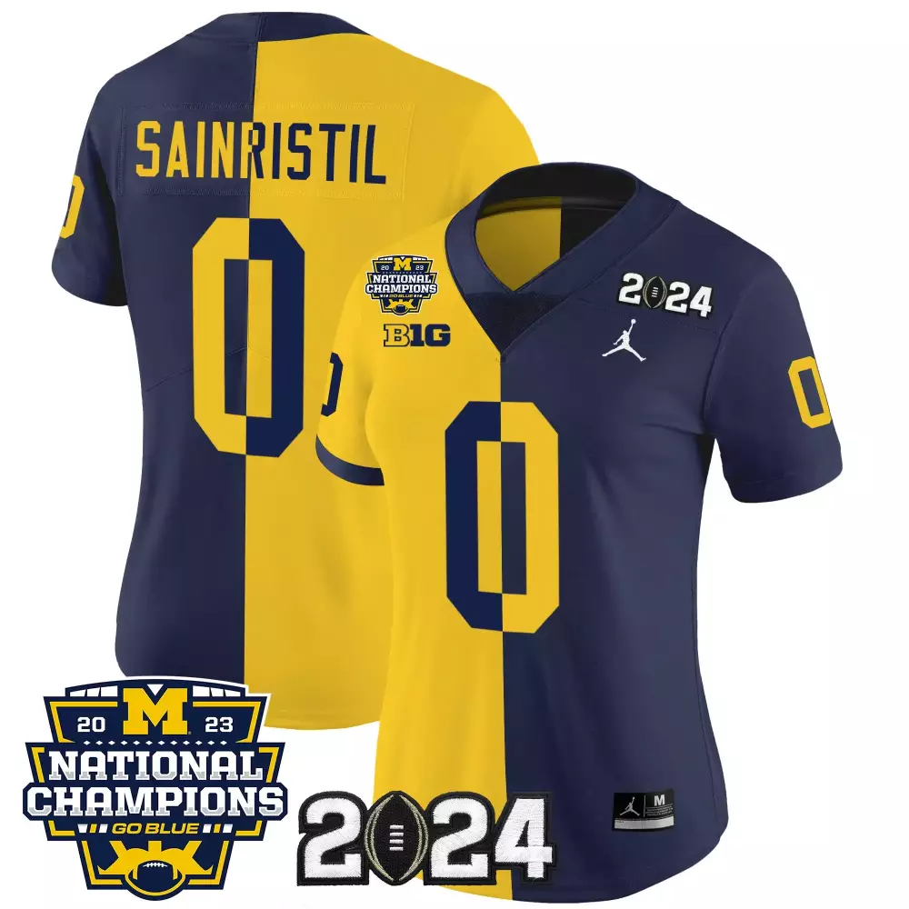 Sainristil Michigan Wolverines 2023 National Champions Split Jersey | Stitched Vapor Style | Replica Fan Gear | For Men, Women & Youth