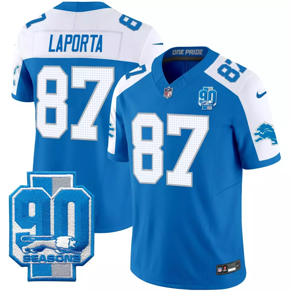 Sam Laporta Blue Alternate Men’s Detroit Lions 90th Year Patch Gold Trim Jersey | Stitched Fan Gear | For Men, Women & Youth;Sam Laporta Blue Alternate Men’s Detroit Lions 90th Year Patch Jersey | Stitched Fan Gear | For Men, Women & Youth;Sam Laporta Blue Alternate Men’s Detroit Lions 90th Year Patch Vapor Limited Jersey | Stitched Fan Gear | For Men, Women & Youth;Sam Laporta Blue Alternate Men’s Detroit Lions Throwback 90th Year Patch Vapor Limited Jersey | Stitched Fan Gear | For Men, Women & Youth;Sam Laporta Blue Alternate Women’s Detroit Lions 2023 NFC North Champions Patch Vapor Jersey | Stitched Fan Gear | For Men, Women & Youth