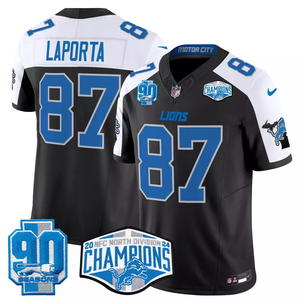 Sam Laporta Detroit Lions 2024 NFC North Division Champions Black Alternate Jersey | Vapor Elite Edition | Stitched Fan Gear | For Men, Women & Youth