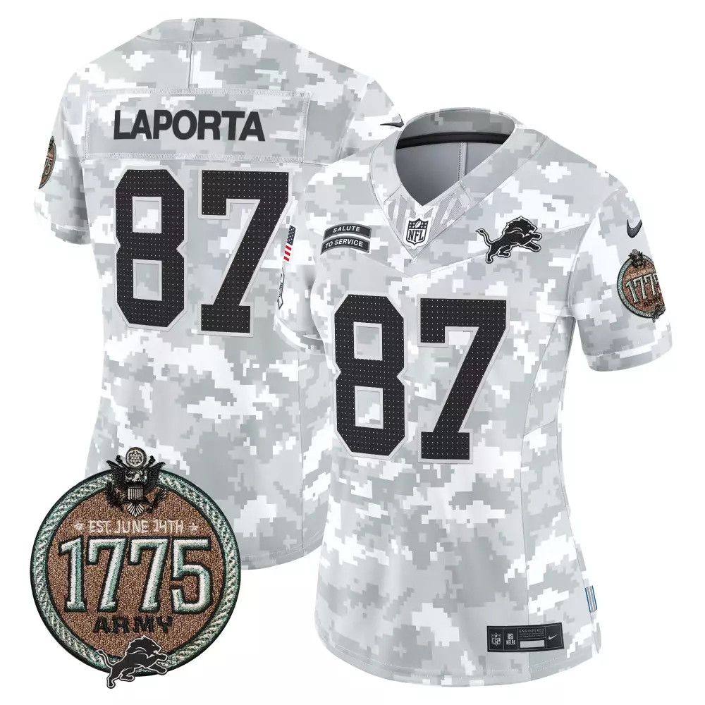 Sam Laporta Detroit Lions 2024 NFC North Division Champions Patch Game Jersey | Gray | Stitched Fan Gear for Men, Women & Youth;Sam Laporta Detroit Lions 2024 NFC North Division Champions Patch Gold Trim Vapor Limited Jersey | Gray | Stitched Fan Gear for Men, Women & Youth;Sam Laporta Detroit Lions 2024 Salute to Service Army Jersey | Stitched Establishment Year Patch | Limited Edition | For Men, Women & Youth;Sam Laporta Detroit Lions 2024 Salute to Service Army Jersey | Stitched Establishment Year Patch | Limited Edition | For Women | For Men, Women & Youth;Sam Laporta Detroit Lions 2024 Salute to Service Establishment Year Patch Vapor Limited Jersey | All Stitched | For Men, Women & Youth