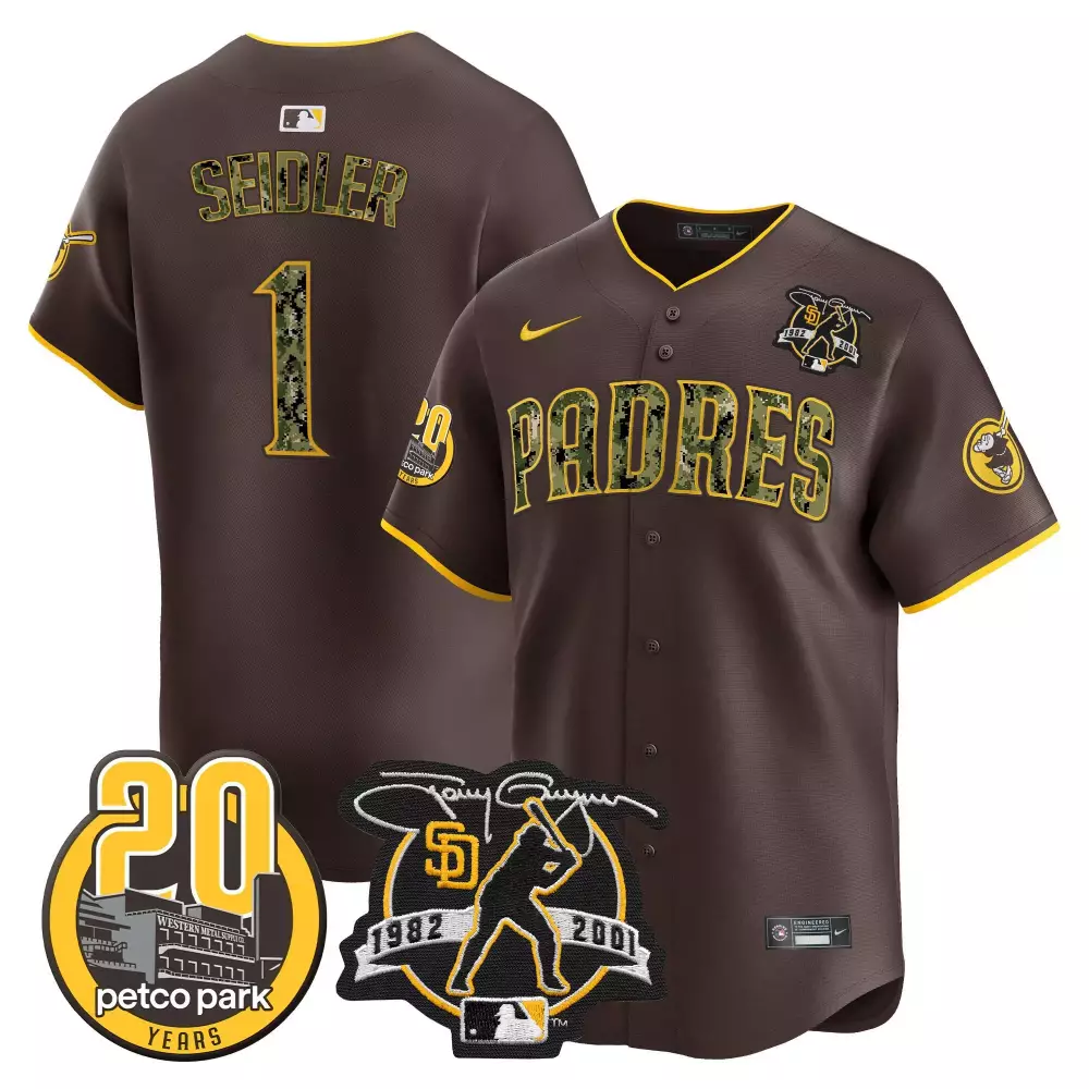 San Diego Padres Team White Men’s Jersey | Armed Forces Day Vapor Premier Limited Edition | Fan Gear for Men, Women & Youth;San Diego Padres Team White Men’s Jersey | California Map Cool Base Edition | Fan Gear for Men, Women & Youth;San Diego Padres Tony Gwynn Faithful Patch Jersey | Brown Stitched Vapor Premier | Limited Edition Fan Gear | For Men, Women & Youth;San Diego Padres Tony Gwynn Petco Park 20th Patch Jersey | Brown Stitched Vapor Premier | Limited Edition Fan Gear | For Men, Women & Youth;San Diego Padres Tony Gwynn Petco Park 20th Patch Jersey | Brown Stitched Vapor Premier V2 | Limited Edition Fan Gear | For Men, Women & Youth