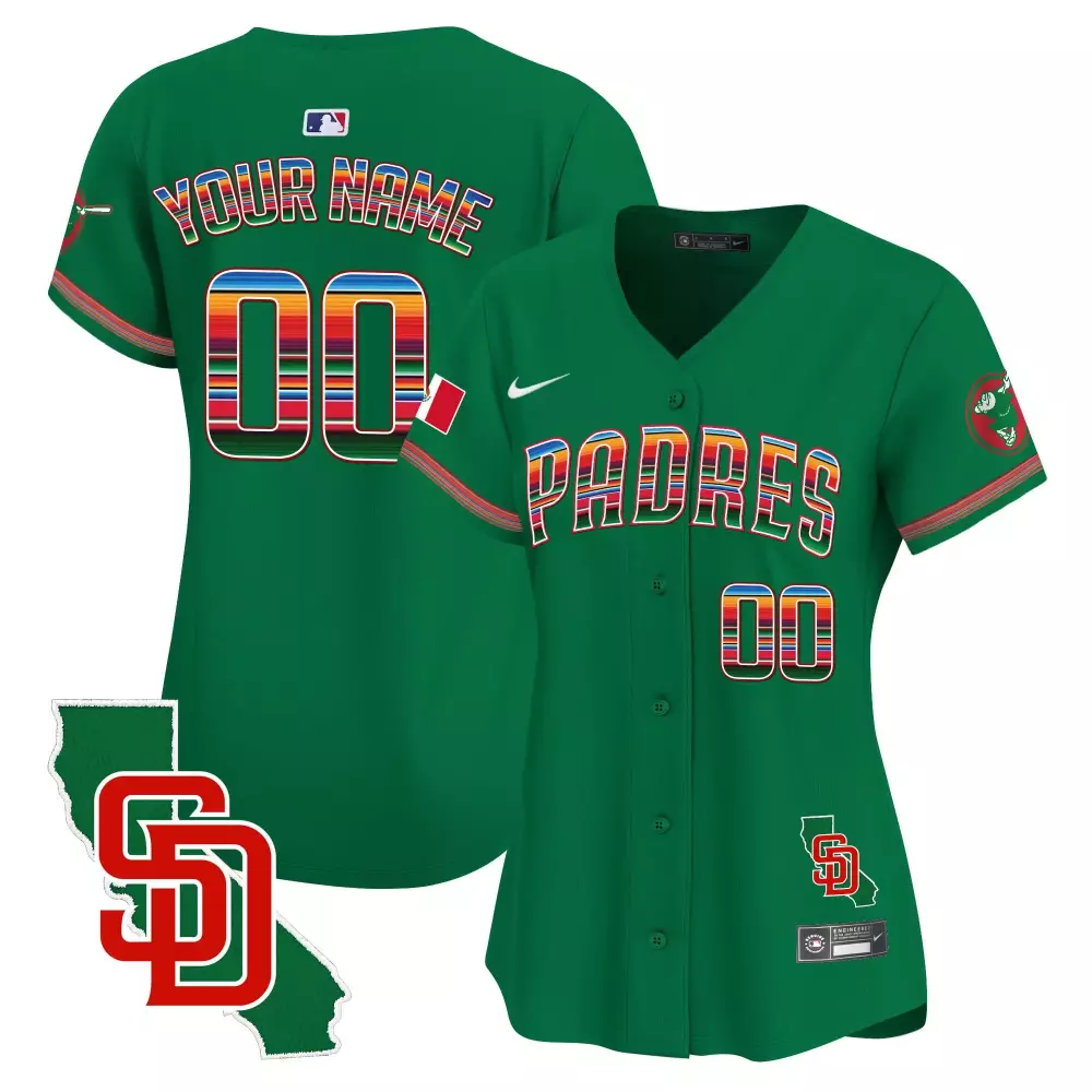 San Diego Padres Women’s Green Mexico For Peter Patch Vapor Premier Limited Jersey | Custom Stitched | Fan Gear for Men, Women & Youth;San Diego Padres Women’s Green Mexico Patch Vapor Premier Limited Jersey | Custom Stitched | Fan Gear for Men, Women & Youth;San Diego Padres Women’s Green Mexico Premier Limited Jersey | Custom Stitched | Fan Gear for Men, Women & Youth;San Diego Padres Women’s Independence Day Vapor Jersey | Stitched 2025 Edition Fan Gear | For Men, Women & Youth;San Diego Padres Women’s Jersey for Peter | Stitched Vapor Premier Limited Edition | Fan Gear for Women & Youth