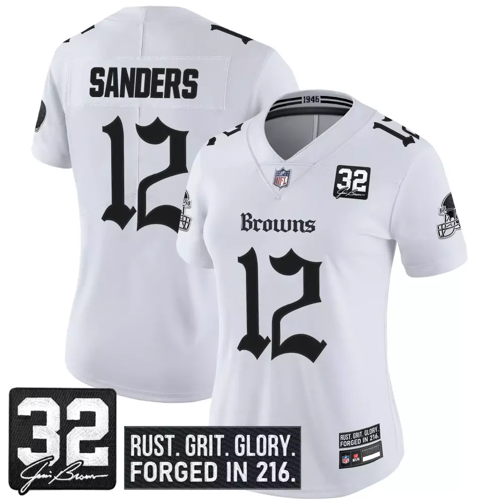 Sanders 12 Women’s Stitched Jersey | Cleveland Browns 2023 | Black Name Patch | Replica Fan Gear for Men, Women & Youth;Sanders 12 Women’s Stitched Jersey | Cleveland Browns 2023 | White Name Patch | Fan Gear for Men, Women & Youth;Sanders 12 Women’s Stitched Vapor Jersey | Cleveland Browns 1946 | Black Name Patch | Game Day Outfit for Men, Women & Youth;Sanders 12 Women’s Stitched Vapor Jersey | Cleveland Browns 2023 | Black Rust Grit Glory Patch | Fan Gear for Men, Women & Youth;Sanders 12 Women’s Stitched Vapor Jersey | Cleveland Browns 2023 | Brown 1946 Patch | Replica Fan Gear for Men, Women & Youth