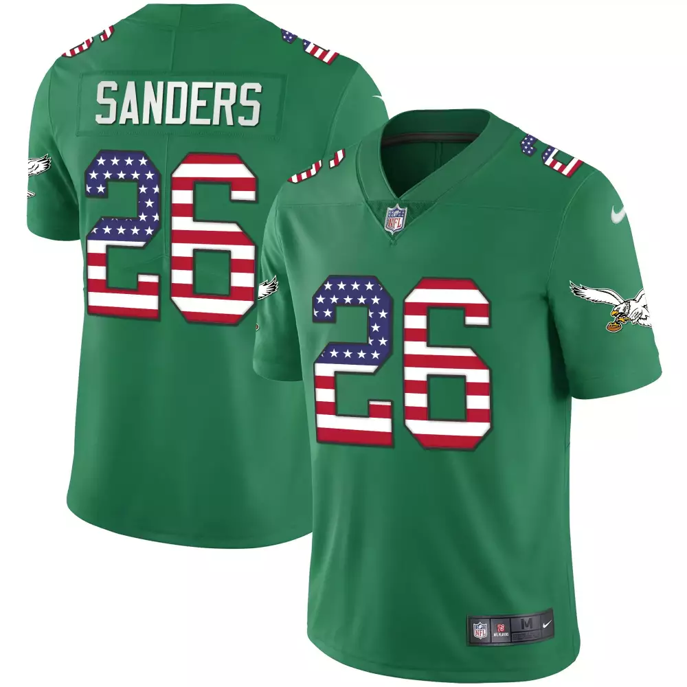 Sanders 26 Philadelphia Eagles 2022 Stitched Vapor Jersey | Green USA Flag Edition | Limited Edition Fan Gear | For Men, Women & Youth;Sanders 26 Philadelphia Eagles 2022 Stitched Vapor Jersey | Green White | Replica Fan Gear | For Men, Women & Youth;Sanders 26 Philadelphia Eagles 2022 Stitched Vapor Jersey | Midnight Green | Limited Edition Fan Gear | For Men, Women & Youth;Sanders 26 Philadelphia Eagles 2022 Stitched Vapor Jersey | White Green USA Edition | Limited Edition Fan Gear | For Men, Women & Youth;Sanders 26 Philadelphia Eagles 2022 White Green USA Edition Jersey | Stitched Men’s Fan Gear | For Men, Women & Youth
