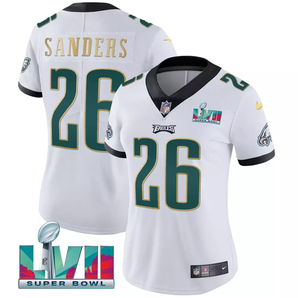 Sanders 26 Philadelphia Eagles Super Bowl LVII Women’s Stitched Vapor Jersey | Limited Edition | For Men, Women & Youth;Sanders 26 Philadelphia Eagles Super Bowl LVII Women’s Vapor Jersey | All Stitched | Fan Gear | For Men, Women & Youth;Sanders 26 Philadelphia Eagles Super Bowl LVII Youth Jersey | All Stitched Vapor | Perfect Fan Gear for Young Fans | For Men, Women & Youth;Sanders 26 Philadelphia Eagles Super Bowl Patch Teal Jersey | All Stitched Men’s Style 2023 | Limited Edition Fan Gear | For Men, Women & You;Sanders 26 Philadelphia Eagles White All Stitched Vapor Jersey | Youth Style 2023 | Game Day Outfit for Young Fans | For Men, Women & Youth