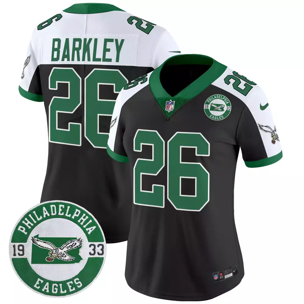 Saquon Barkley Eagles 2024 Black Alternate Women’s Jersey | Jerome Brown Patch Kelly Green | Vapor Limited | For Women, Men & Youth