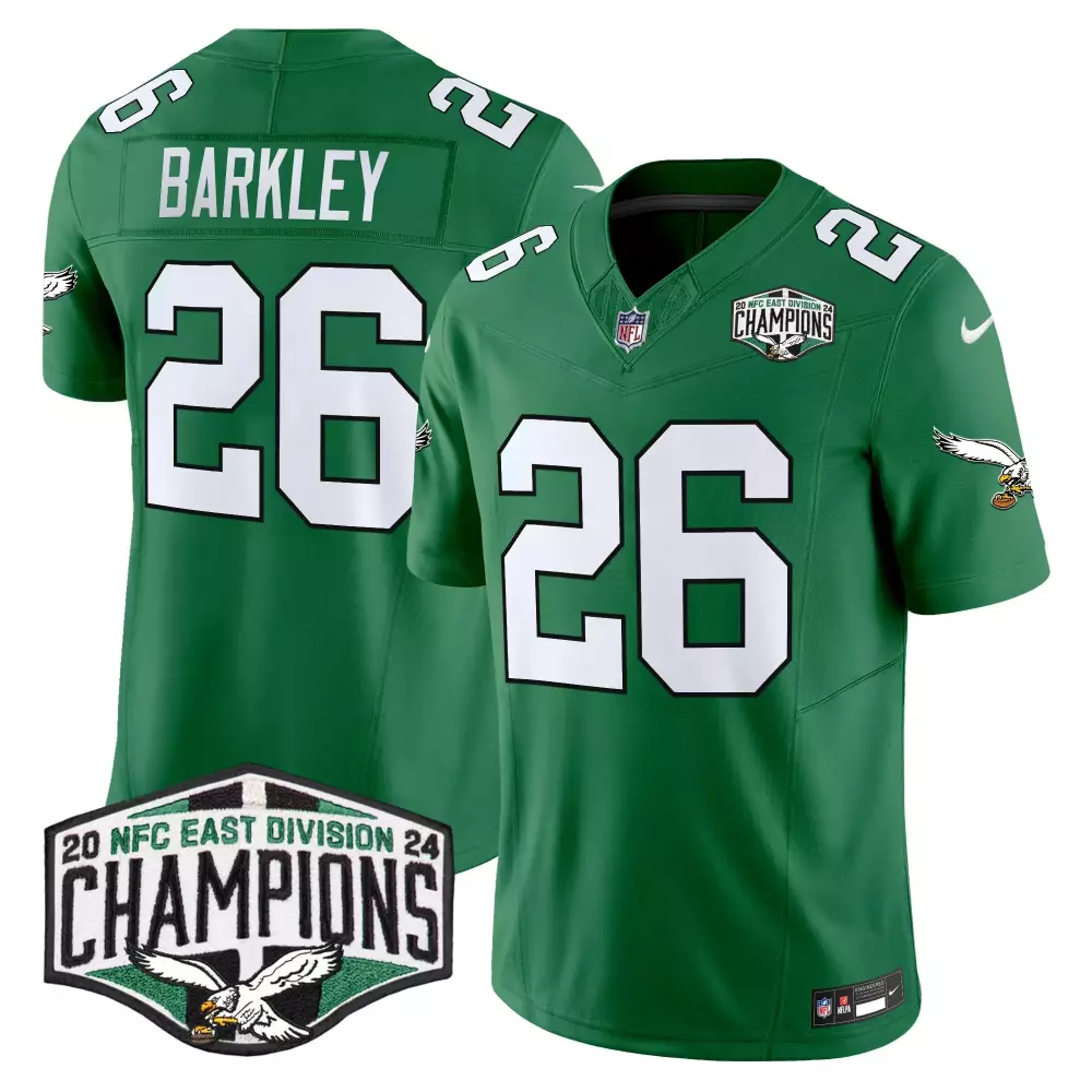 Saquon Barkley Philadelphia Eagles 2024 NFC East Division Champions Gold Trim Vapor Limited Jersey | Stitched Fan Gear for Men, Women & Youth;Saquon Barkley Philadelphia Eagles 2024 NFC East Division Champions Gold Vapor Limited Jersey | Stitched Fan Gear | For Men, Women & Youth;Saquon Barkley Philadelphia Eagles 2024 NFC East Division Champions Gold Vapor Limited Jersey | Stitched Fan Gear for Men, Women & Youth;Saquon Barkley Philadelphia Eagles 2024 NFC East Division Champions Gold Vapor Limited Jersey | Stitched Fan Gear for Men, Women & Youth;Saquon Barkley Philadelphia Eagles 2024 NFC East Division Champions Kelly Green Vapor Limited Jersey | All Stitched | For Men, Women & Youth