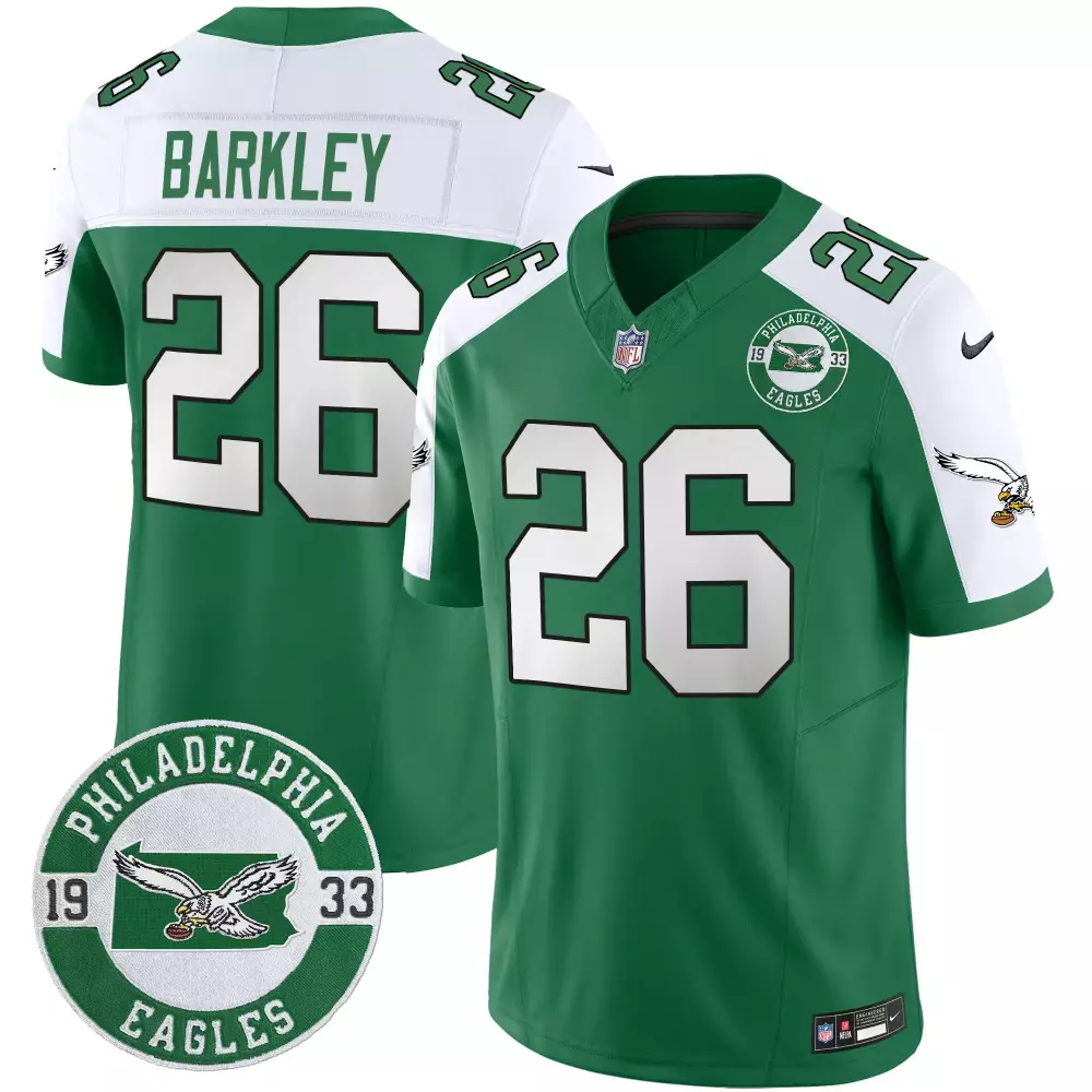 Saquon Barkley Philadelphia Eagles Jerome Brown Patch Kelly Green Alternate Jersey V2 | Stitched Fan Gear for Men, Women & Youth;Saquon Barkley Philadelphia Eagles Jerome Brown Patch Kelly Green Alternate Jersey V2 | Stitched Fan Gear for Women | For Women & Youth;Saquon Barkley Philadelphia Eagles Jerome Brown Patch Kelly Green Game Jersey | All Stitched | For Men, Women & Youth;Saquon Barkley Philadelphia Eagles Kelly Alternate 2024 NFC East Champions Vapor Limited Jersey | Stitched Fan Gear | For Men, Women & Youth;Saquon Barkley Philadelphia Eagles Kelly Alternate 2024 Throwback Vapor Limited Jersey | Stitched Fan Gear | For Men, Women & Youth