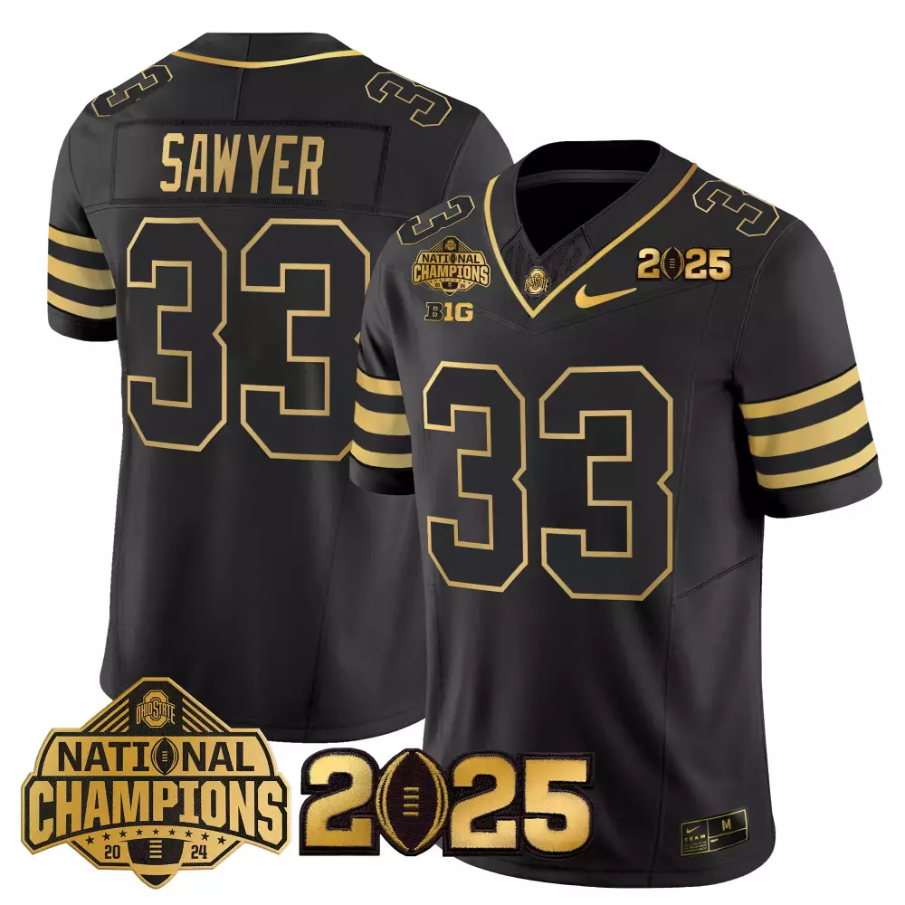 Sawyer 33 Ohio State Buckeyes 2025 Black Stitched Jersey | National Champions Name Patch Fan Gear | For Men, Women & Youth