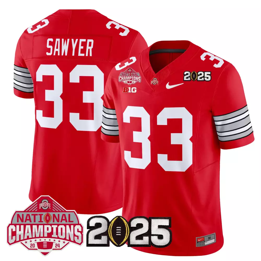 Sawyer 33 Ohio State Buckeyes 2025 Red Name Patch Stitched Jersey | National Champions Fan Gear | For Men, Women & Youth