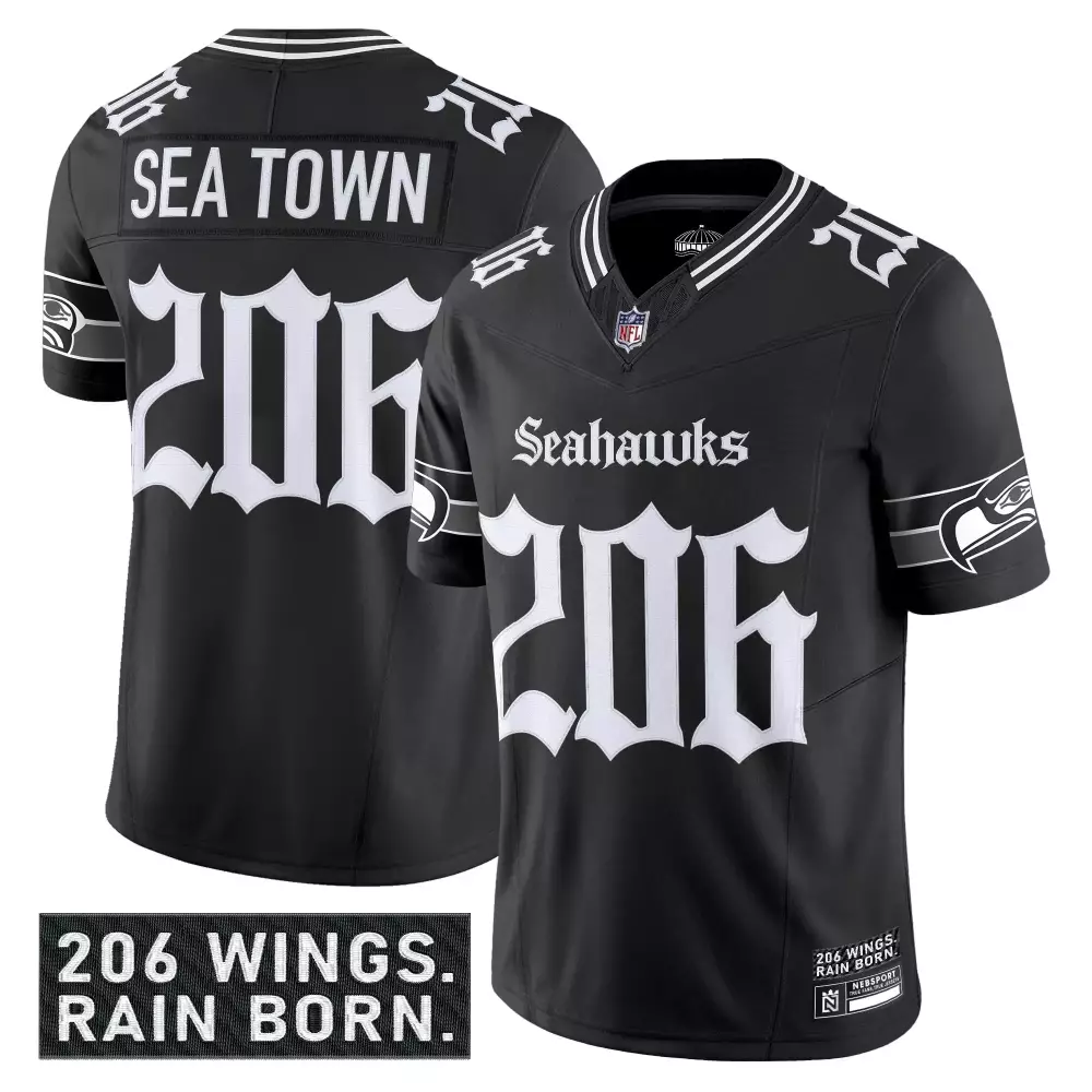 Seattle Seahawks 2023 Rain City Shadows Edition Stitched Jersey | Black 206 Sea Town for Women | For Men, Women & Youth;Seattle Seahawks 2023 Rain City Shadows Edition Stitched Jersey | Black Name Patch 206 for Women | For Men, Women & Youth;Seattle Seahawks 2023 Rain City Shadows Edition Stitched Jersey | White Fan 12 for Women | For Men, Women & Youth;Seattle Seahawks 2023 Stitched Men’s Vapor Jersey | Black Rain City Shadows Edition | Fan Gear for Men, Women & Youth;Seattle Seahawks 2023 Stitched Vapor Jersey | Black Edition | Fan Gear for Men, Women & Youth
