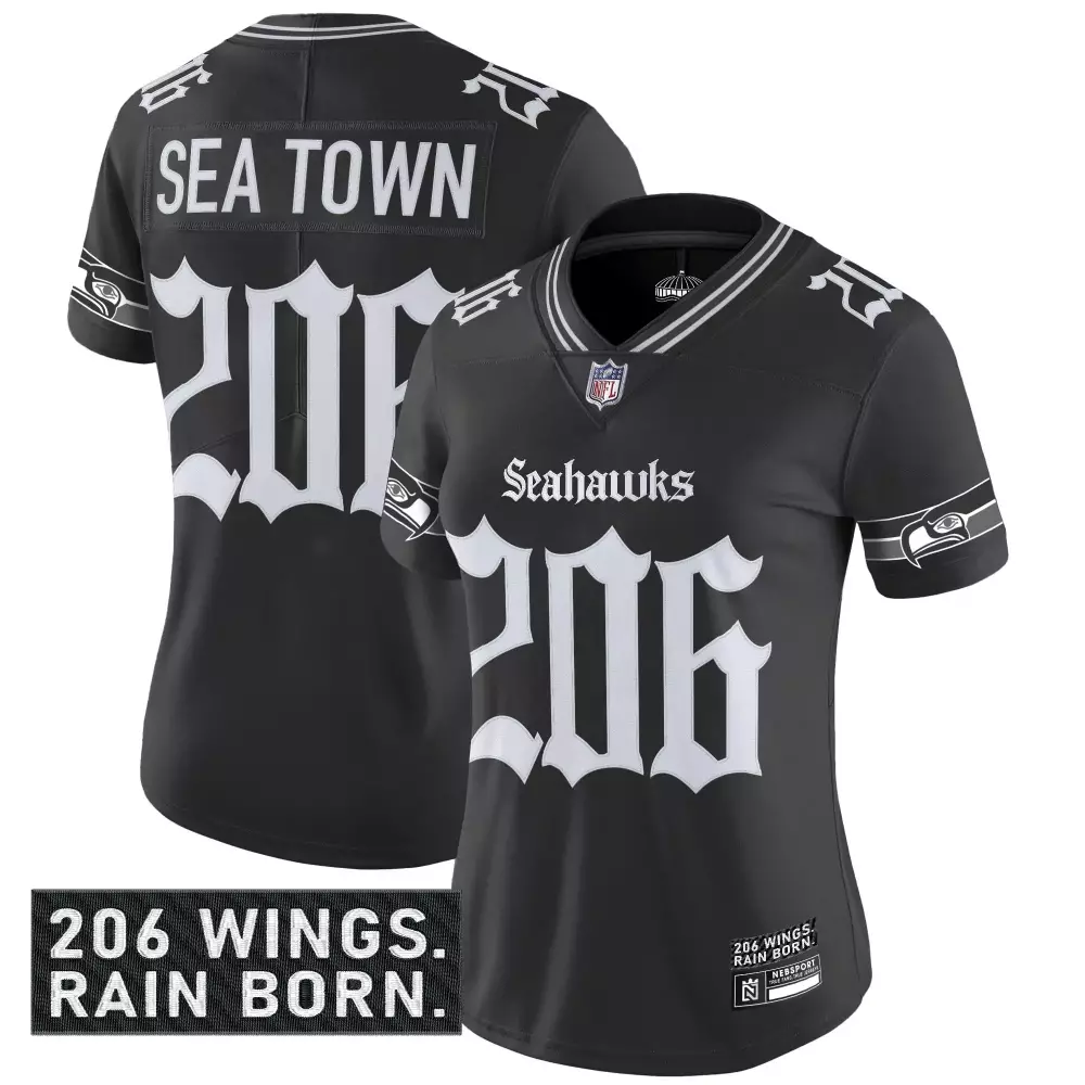 Seattle Seahawks 2023 Rain City Shadows Edition Stitched Jersey | Black 206 Sea Town for Women | For Men, Women & Youth