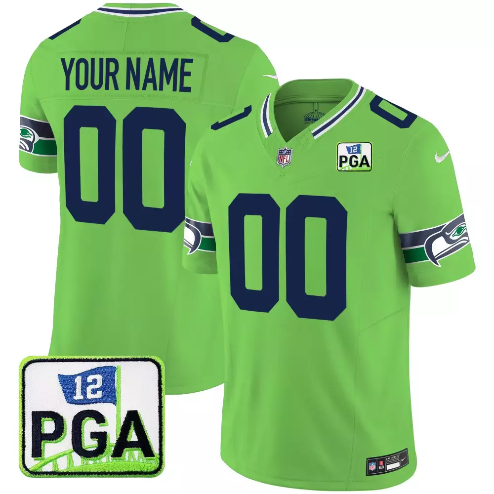 Seattle Seahawks Nike Youth 50th Season Throwback Custom Game Jersey | Royal Style | For Youth Fans;Seattle Seahawks Nike Youth Custom Game Jersey | College Navy Style | Perfect for Game Day | For Youth Fans;Seattle Seahawks PGA Patch Custom Jersey | Green Men Vapor Limited Edition | All Stitched Fan Gear | For Men, Women & Youth;Seattle Seahawks PGA Patch Vapor Jersey | Green Limited Edition Fan Gear | Custom Stitched for Men, Women & Youth;Seattle Seahawks PGA Patch Vapor Jersey | Navy Stitched Limited Edition | Custom Fan Gear for Men, Women & Youth