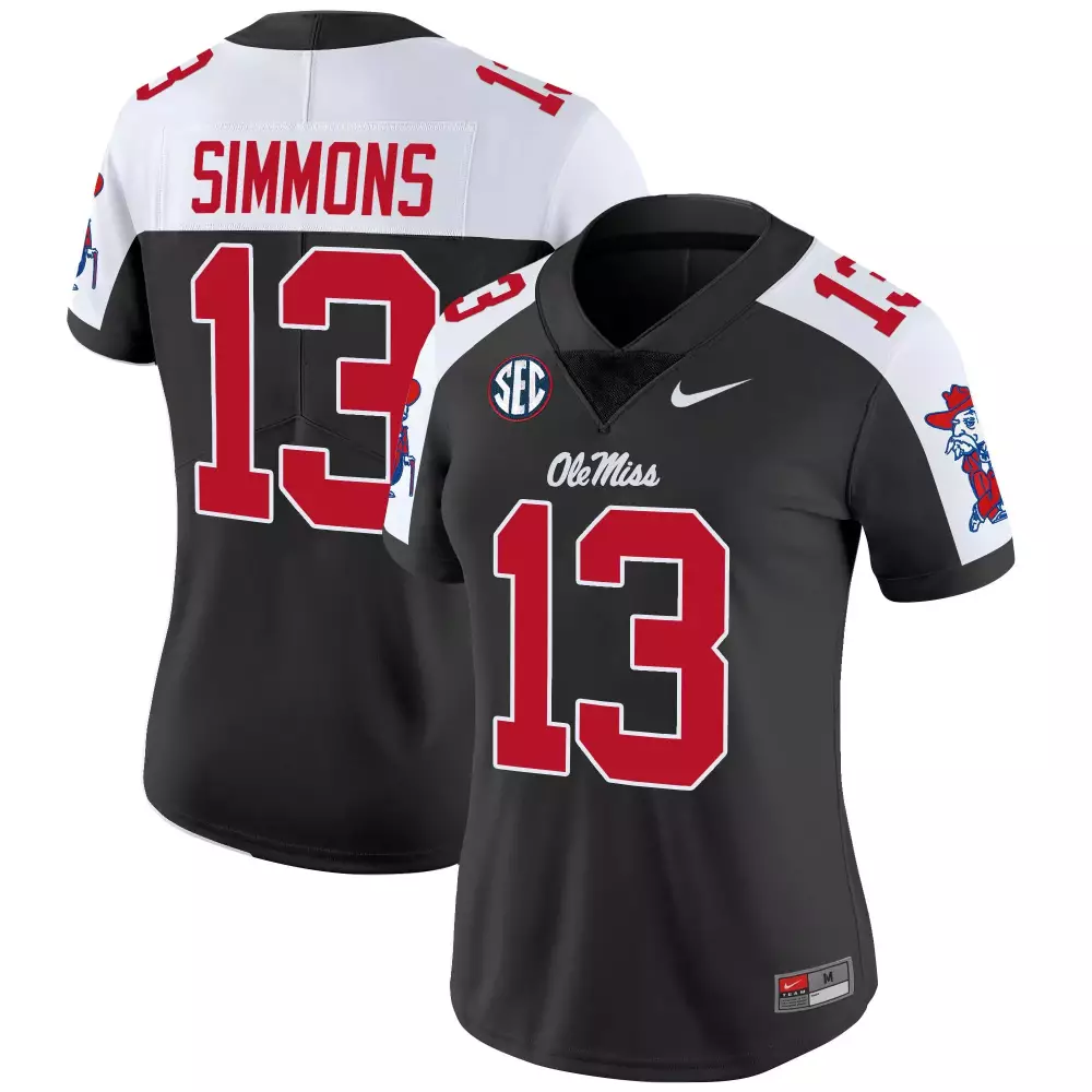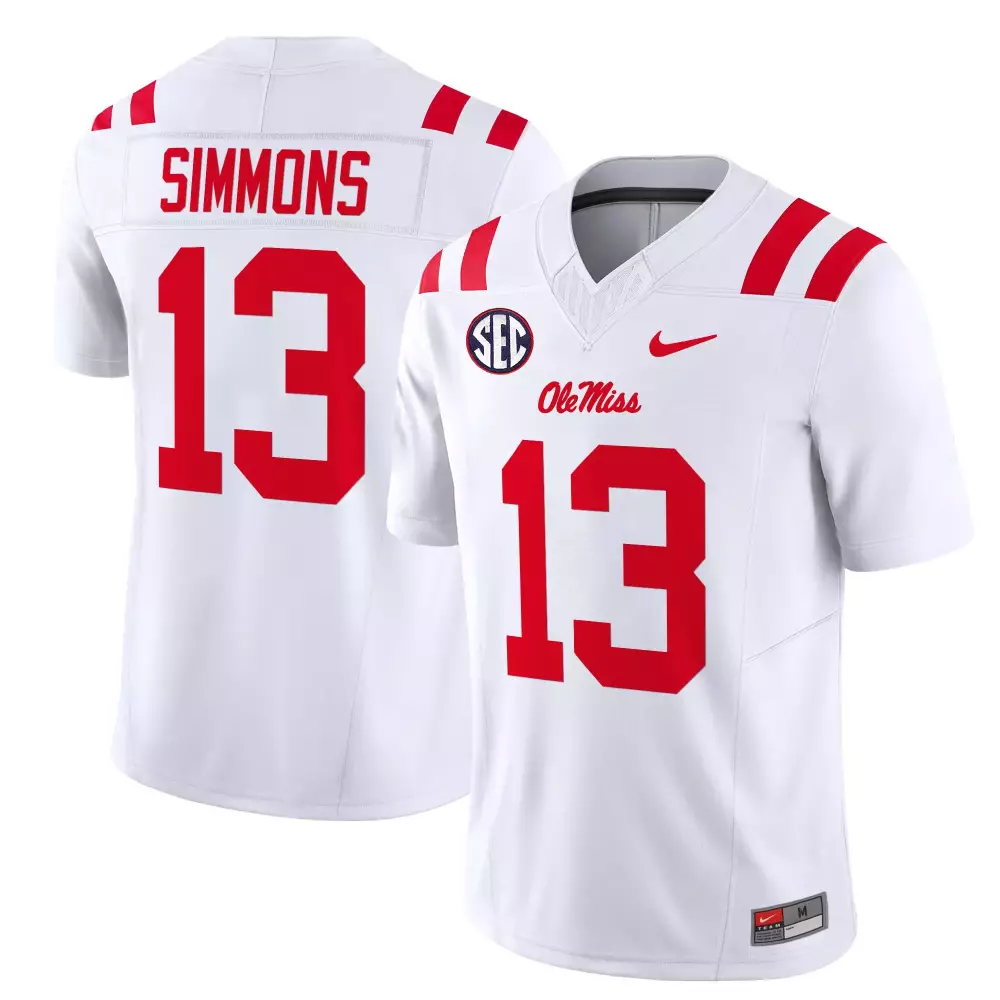 Simmons 13 Ole Miss Rebels 2025 Stitched Jersey | White Season Name Patch | Limited Edition Fan Gear for Men, Women & Youth;Simmons 13 Ole Miss Rebels 2025 Stitched Jersey | White SEC Patch | Replica Fan Gear for Men, Women & Youth;Simmons 13 Ole Miss Rebels 2025 Vapor Jersey | Black All Stitched SEC Patch | Limited Edition Fan Gear for Women, Men & Youth;Simmons 13 Ole Miss Rebels 2025 Vapor Jersey | Blue All Stitched SEC Patch | Replica Fan Gear for Women, Men & Youth;Simmons 13 Ole Miss Rebels 2025 Vapor Jersey | Navy All Stitched SEC Patch | Limited Edition Fan Gear for Women, Men & Youth