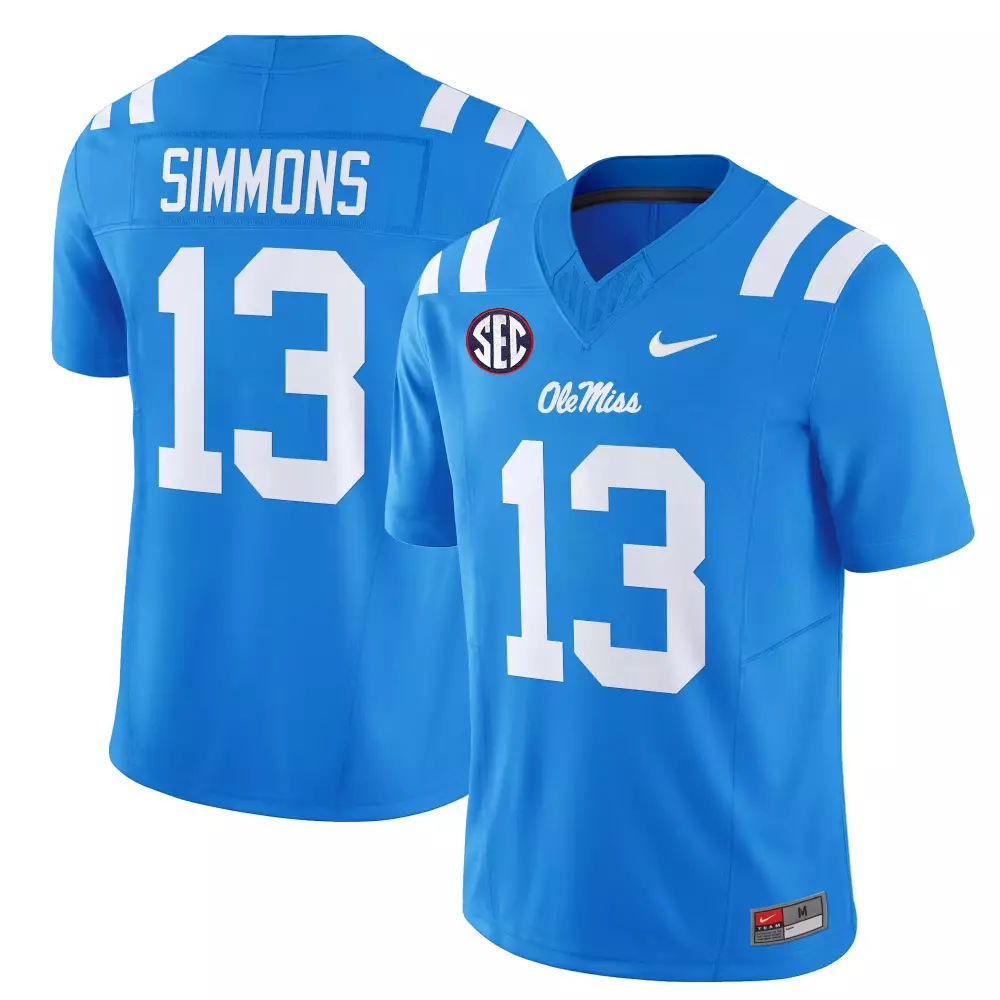 Simmons 13 Ole Miss Rebels Black Vapor Jersey | All Stitched SEC Patch 2025 | Game Day Outfit | For Men;Simmons 13 Ole Miss Rebels Blue Jersey | All Stitched 2025 SEC Name Patch | Game Day Outfit | For Men;Simmons 13 Ole Miss Rebels Blue Vapor Jersey | All Stitched SEC Patch 2025 | Game Day Outfit | For Men;Simmons 13 Ole Miss Rebels Navy Jersey | Stitched 2025 Name Patch | Limited Edition Fan Gear | For Men;Simmons 13 Ole Miss Rebels Navy Vapor Jersey | All Stitched 2025 Season SEC Patch | Game Day Outfit | For Men