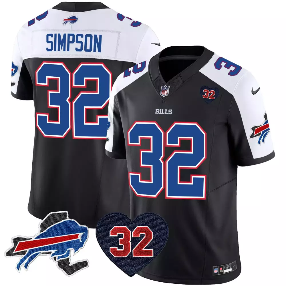 Simpson Buffalo Bills Black Alternate Jersey | OJ Simpson Patch Gold Trim Vapor Limited | For Men, Women & Youth