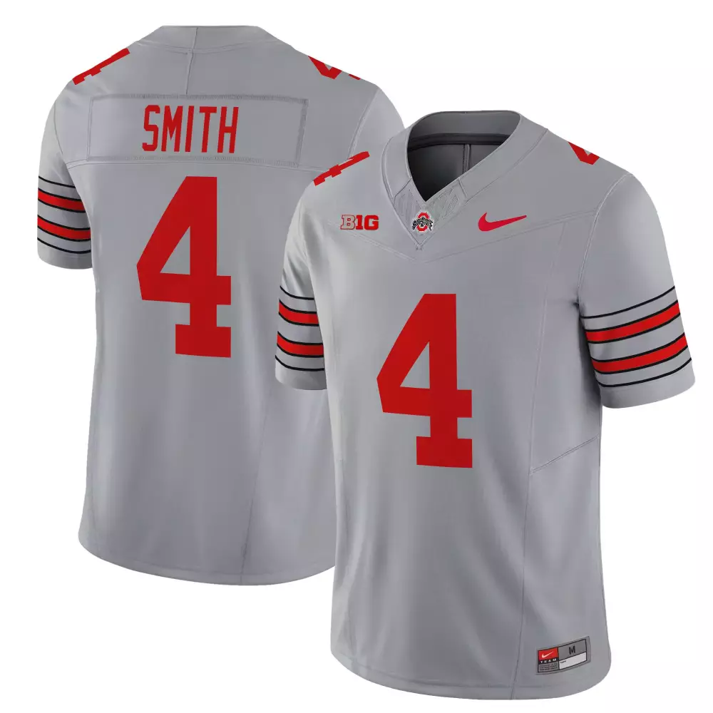 Smith 4 Men’s Stitched Jersey | Ohio State Buckeyes Gray 2025 CFP Final Patch | Fan Gear | For Men, Women & Youth