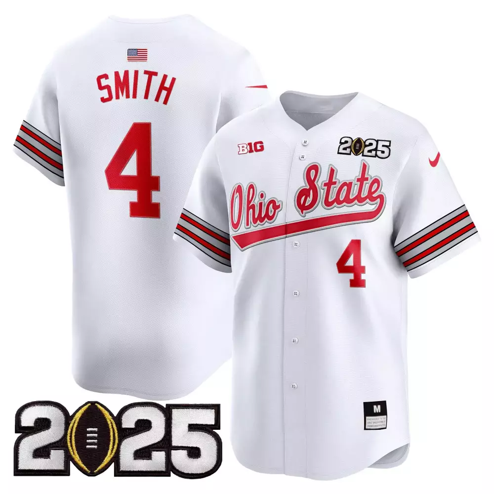 Smith 4 Ohio State Buckeyes 2025 White Heritage Stripe Vapor Jersey | CFP Patch Included | For Men, Women & Youth;Smith 4 Ohio State Buckeyes 2025 White Stitched Vapor Jersey | CFP Final Patch | For Men, Women & Youth;Smith 4 Ohio State Buckeyes 2025 White Stitched Vapor Jersey | National Champions Design | For Men, Women & Youth;Smith 4 Ohio State Buckeyes 2025 White Vapor Jersey | CFP Final Embroidered Patch | For Men, Women & Youth;Smith 4 Ohio State Buckeyes 2025 White Vapor Jersey | National Champions Design | For Men, Women & Youth