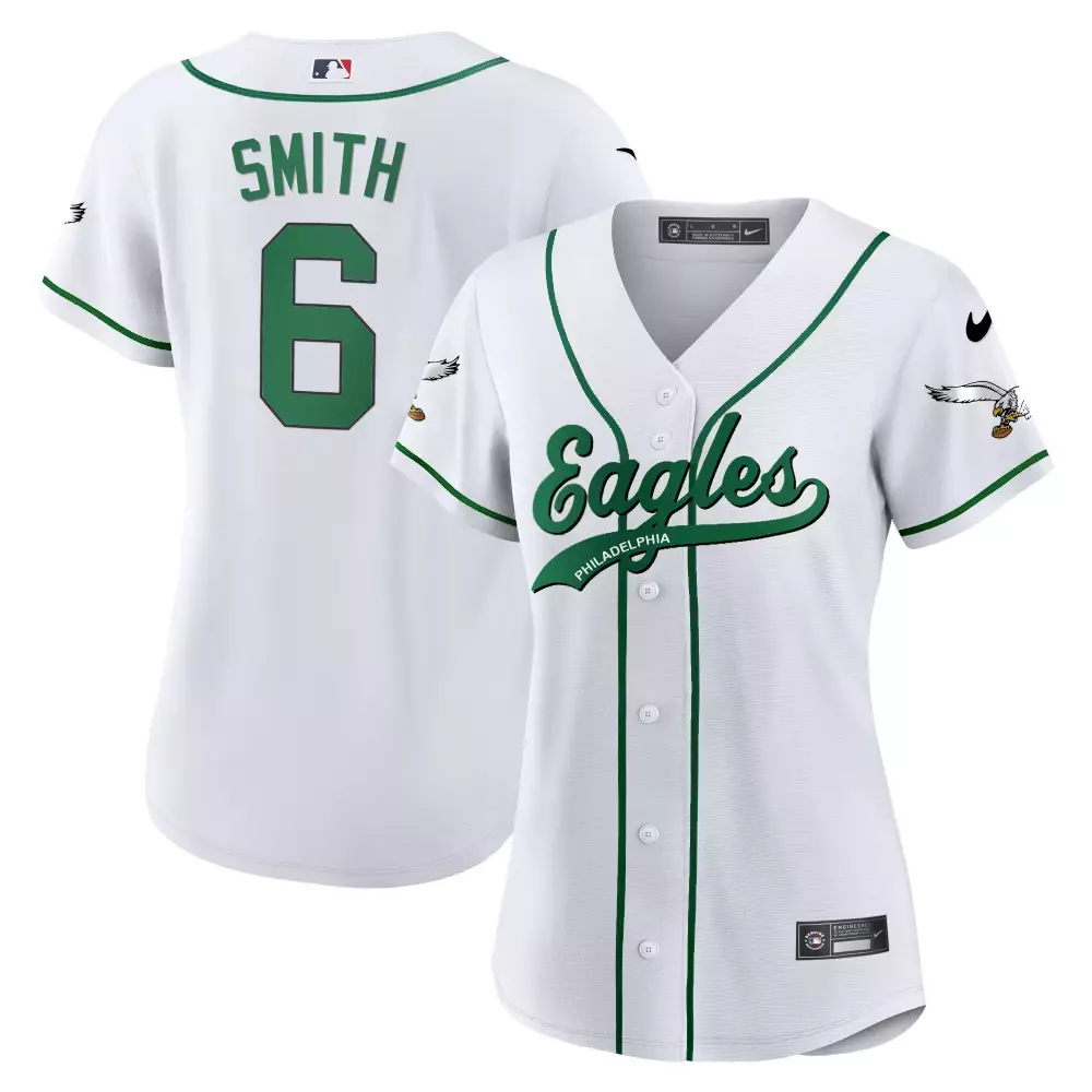 Smith 6 Philadelphia Eagles 2023 White Stitched Women’s Jersey | Name Patch Design | For Women & Youth