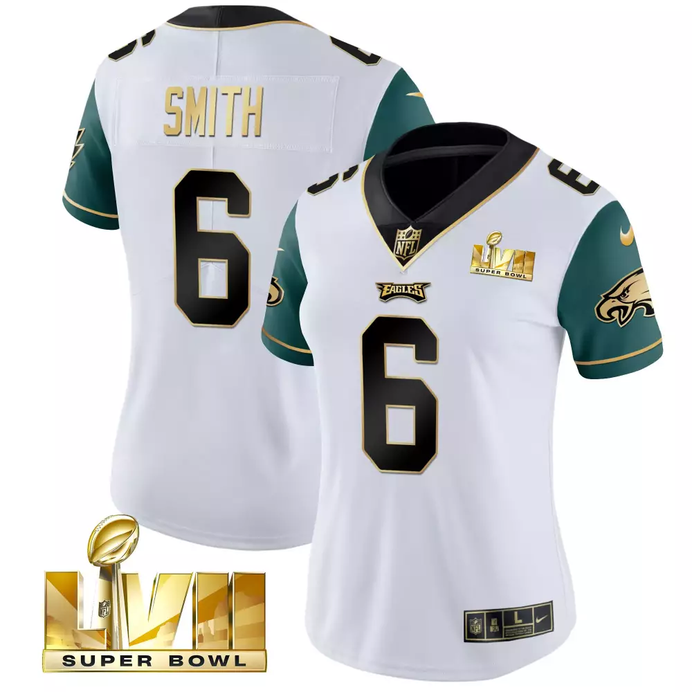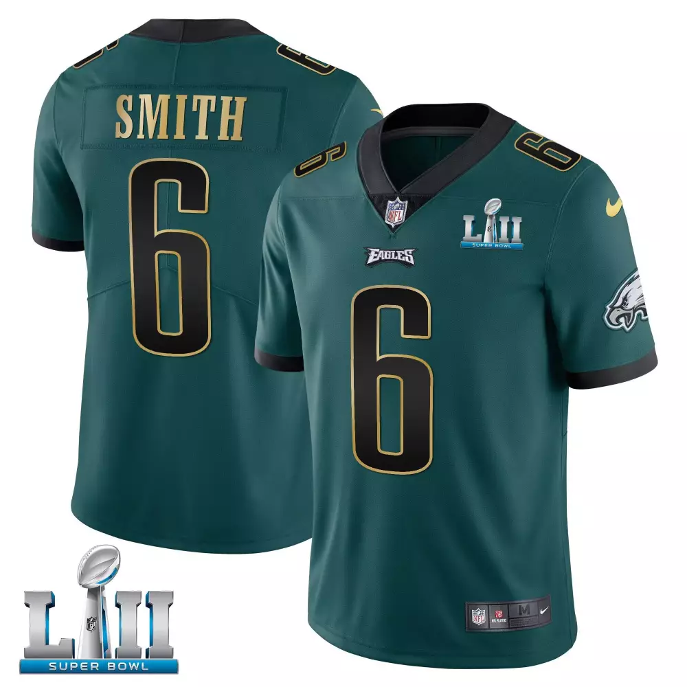 Smith 6 Philadelphia Eagles Stitched Limited Jersey | Dark Green with Super Bowl LVII Patch | Fan Gear | For Men, Women & Youth;Smith 6 Philadelphia Eagles Stitched Vapor Jersey | Armed Forces Day & Super Bowl LIX 2023 | Men’s Fan Gear | For Men, Women & Youth;Smith 6 Philadelphia Eagles Super Bowl LII Edition Teal Jersey | Stitched Fan Gear | For Men, Women & Youth;Smith 6 Philadelphia Eagles Super Bowl LVII Gray All Stitched Vapor Jersey | For Men, Women & Youth;Smith 6 Philadelphia Eagles Super Bowl LVII White Women’s Stitched Jersey | Name Patch Design | For Women & Youth