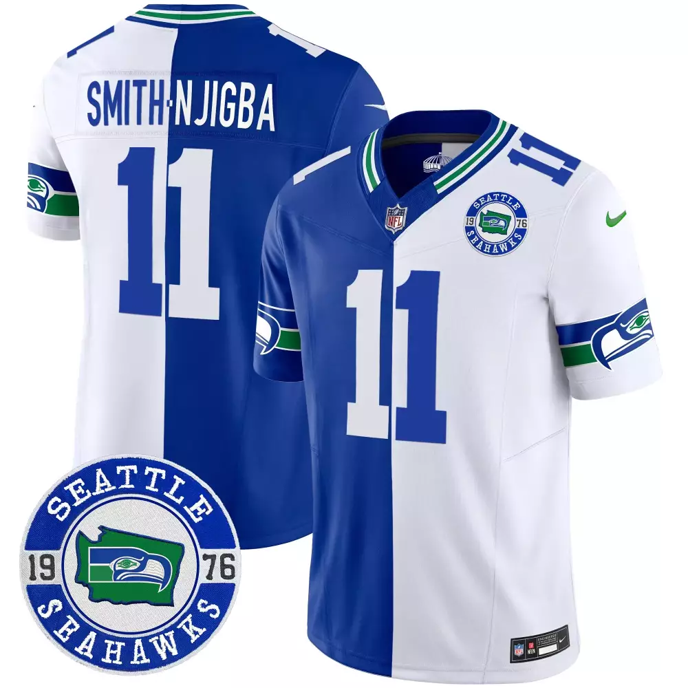 Smith-Njigba Men’s Seattle Seahawks Throwback Game Jersey | Split Design Stitched | Limited Edition Fan Gear | For Men, Women & Youth;Smith-Njigba Seattle Seahawks 1976 Throwback Jersey | Stitched Vapor Limited Edition | Fan Gear for Men, Women & Youth;Smith-Njigba Seattle Seahawks 2024 City Patch Vapor Limited Jersey | All Stitched | Fan Gear for Men, Women & Youth;Smith-Njigba Seattle Seahawks 2024 City Patch Vapor Limited Jersey | All Stitched | Fan Gear for Women;Smith-Njigba Seattle Seahawks 2024 Est 1976 Patch Vapor Limited Jersey | All Stitched | Fan Gear for Men, Women & Youth