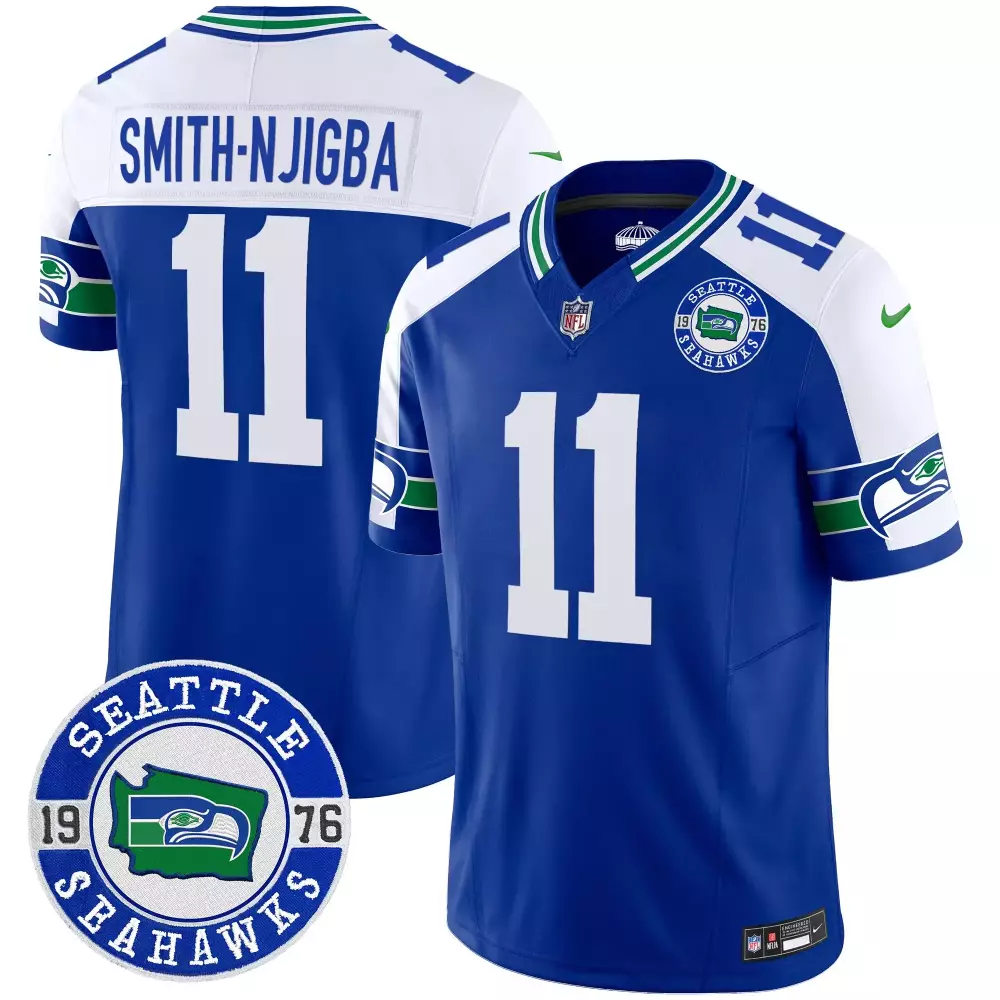 Smith-Njigba Seattle Seahawks Royal Alternate Throwback EST 1976 Patch Game Jersey | Stitched Fan Gear for Men, Women & Youth;Smith-Njigba Seattle Seahawks Royal Alternate Throwback EST 1976 Patch Vapor Limited Jersey | Stitched Fan Gear for Men, Women & Youth;Smith-Njigba Seattle Seahawks Royal Alternate Throwback Vapor Limited Jersey | Stitched Fan Gear for Men, Women & Youth;Smith-Njigba Seattle Seahawks Royal Alternate Throwback Vapor Limited Jersey V2 | Stitched Fan Gear for Men, Women & Youth;Smith-Njigba Seattle Seahawks Royal Men’s 2024 City Patch Vapor Limited Jersey | Stitched Fan Gear for Men, Women & Youth