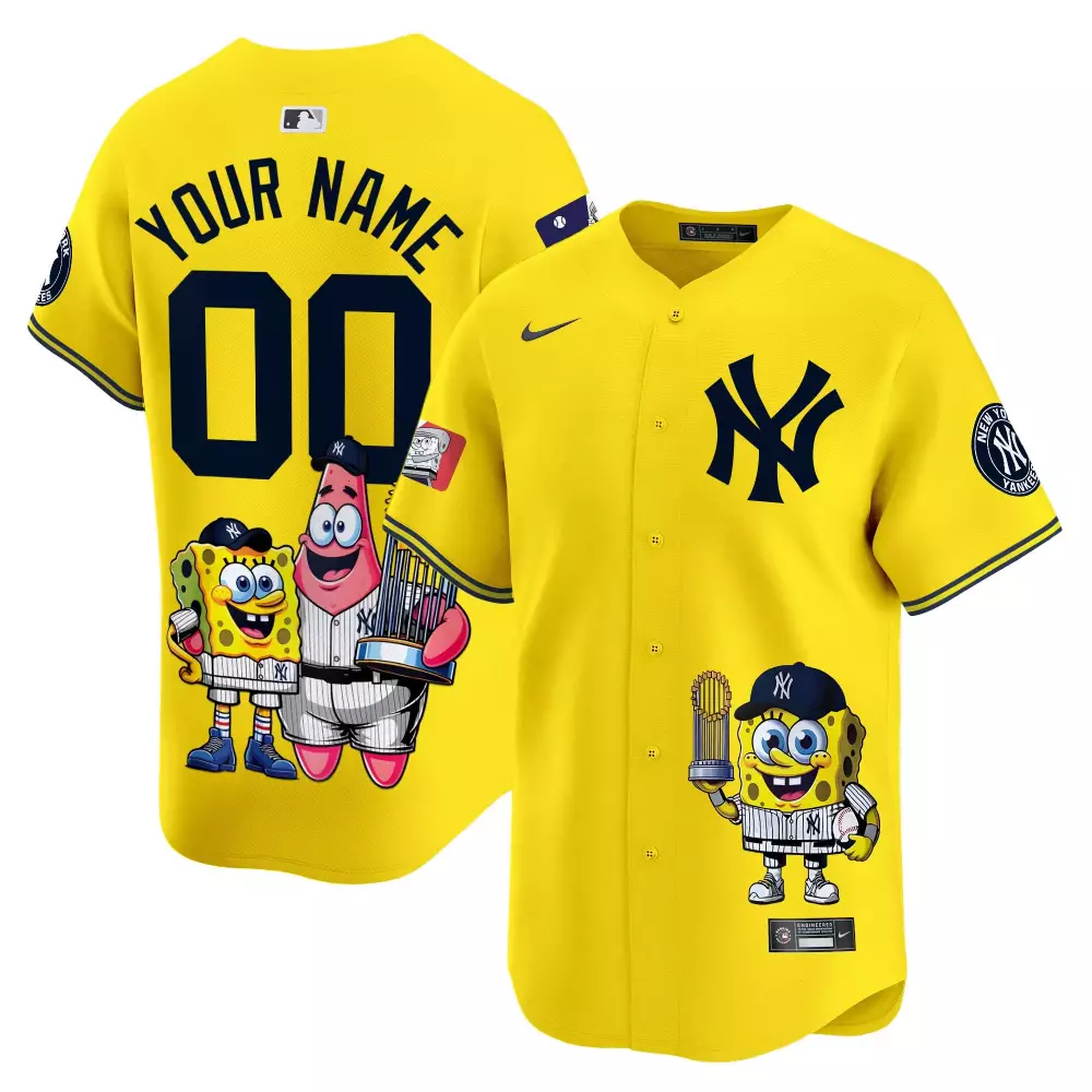 SpongeBob SquarePants New York Yankees Cream Vapor Premier Jersey | Limited Edition Fan Gear | For Men, Women & Youth;SpongeBob SquarePants New York Yankees Gold Youth Jersey | Premier Limited Edition | Stitched Fan Gear | For Men, Women & Youth;SpongeBob SquarePants New York Yankees Vapor Premier Limited Edition Jersey | Printed Fan Gear | For Men, Women & Youth;SpongeBob SquarePants New York Yankees Vapor Premier Limited Jersey | Printed | Fan Gear for Men, Women & Youth;SpongeBob SquarePants New York Yankees Youth 2025 Vapor Premier Jersey | Limited Edition Custom Printed | Fan Gear for Men, Women & Youth