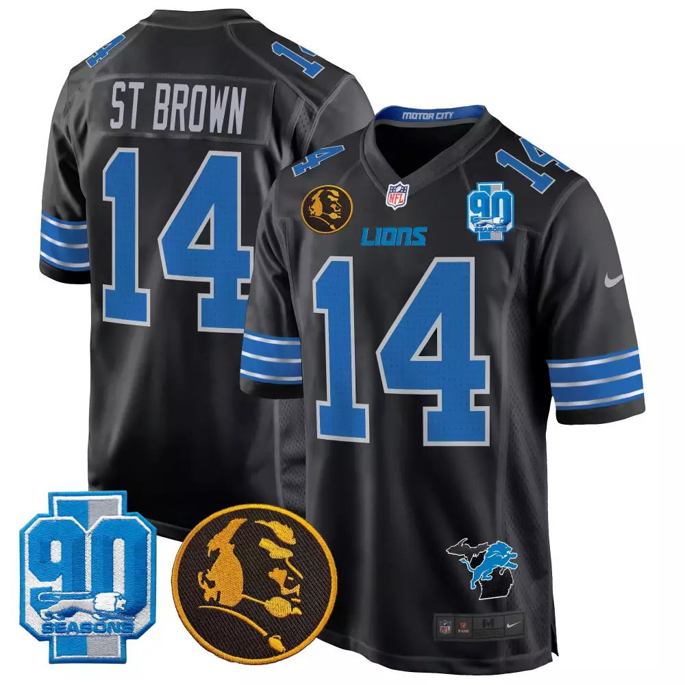 St. Brown Detroit Lions 2024 90th John Madden Patch Vapor Limited Jersey V2 | Gray Stitched Fan Gear for Men, Women & Youth;St. Brown Detroit Lions 2024 Alternate Game Jersey | Stitched | 90th John Madden Patch | Fan Gear for Men, Women & Youth;St. Brown Detroit Lions 2024 Black Game Jersey | Stitched | 90th John Madden Patch | Fan Gear for Men, Women & Youth;St. Brown Detroit Lions 2024 Black Vapor Limited Jersey | Stitched | Est 1934 Patch | Fan Gear for Men, Women & Youth;St. Brown Detroit Lions 2024 Blue Alternate Vapor Limited Jersey | Stitched | Est 1934 Patch | Fan Gear for Men, Women & Youth