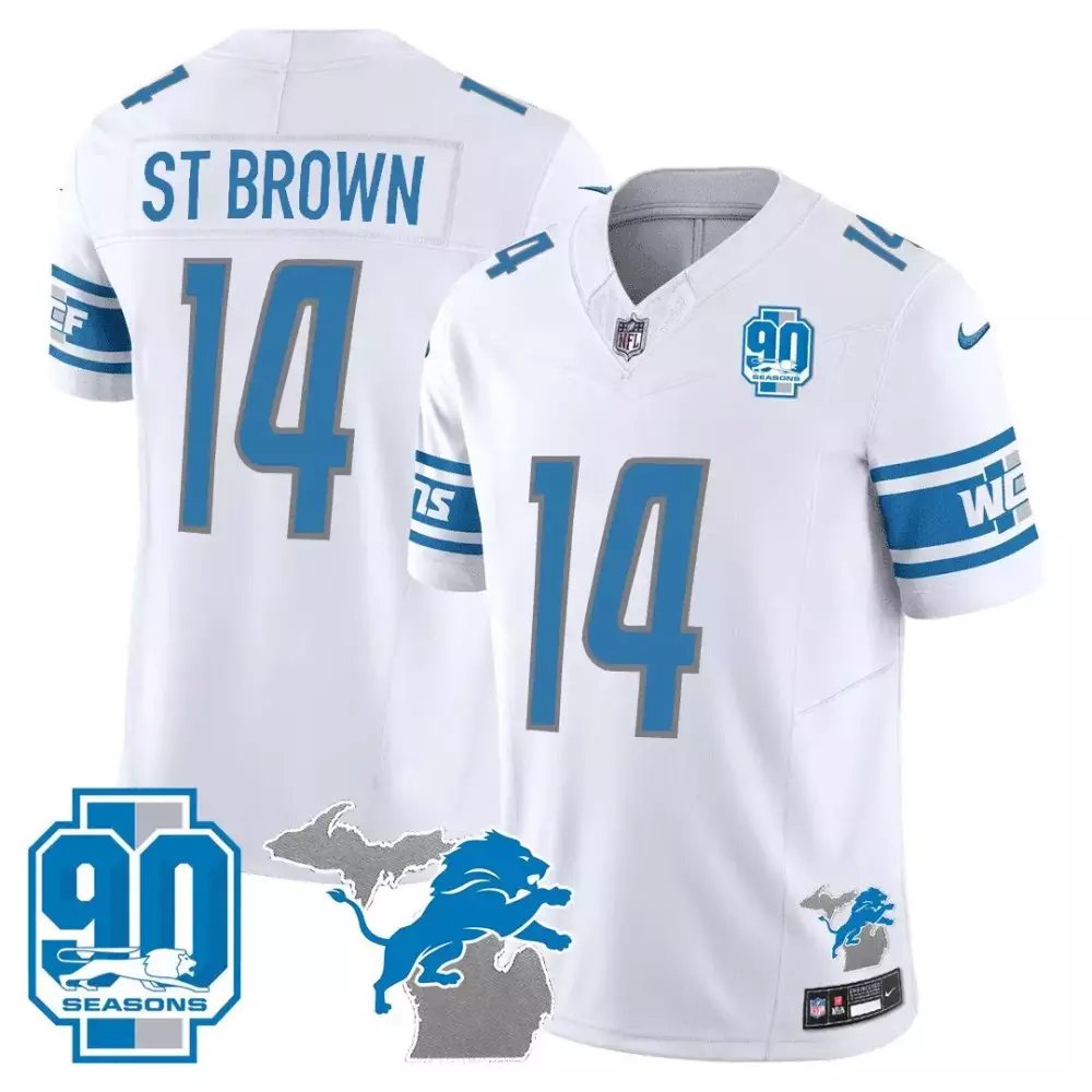 St. Brown Detroit Lions 90th Year Michigan Patch Men’s Vapor Jersey | All Stitched Limited Edition Fan Gear | For Men, Women & Youth