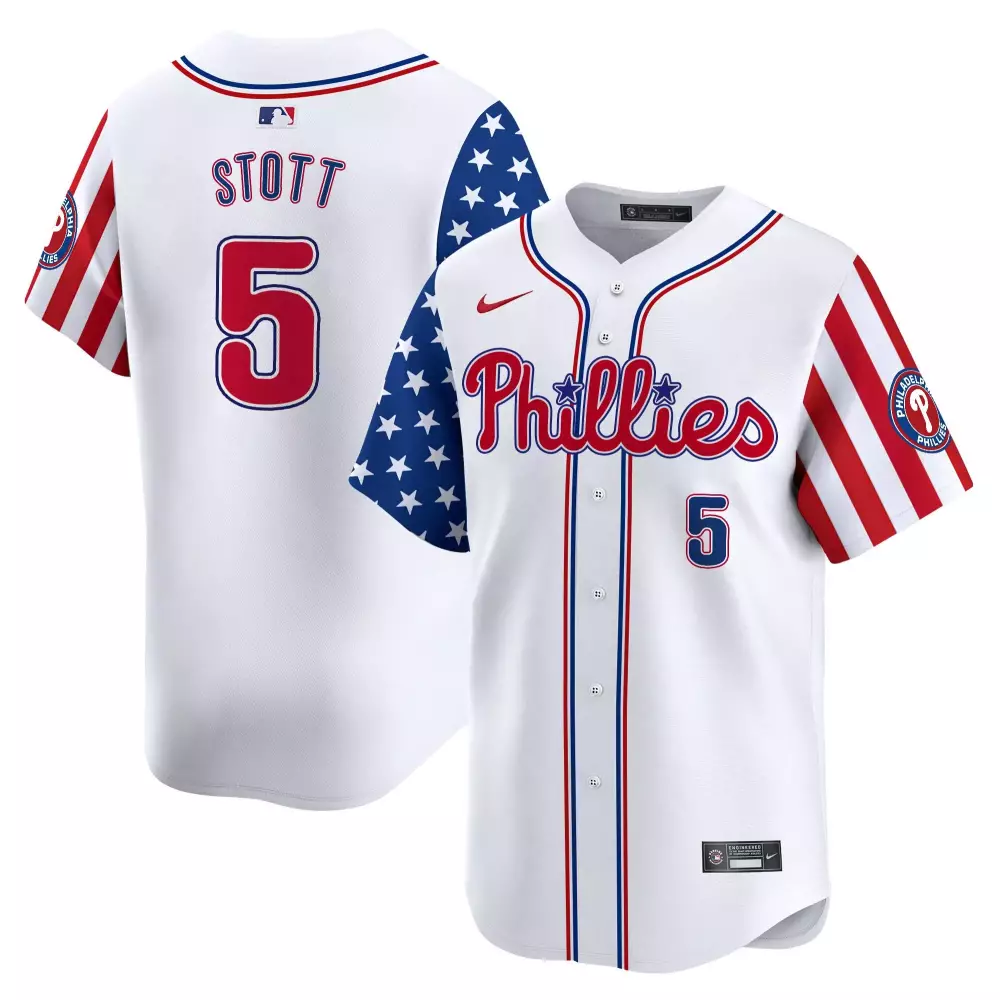 Stott 5 Philadelphia Phillies 2023 Stitched Vapor Jersey | White & Red with NL Patch | Limited Edition for Men, Women & Youth;Stott 5 Philadelphia Phillies 2023 Stitched Vapor Jersey | White & Red with Patch | Fan Gear for Men, Women & Youth;Stott 5 Philadelphia Phillies 2023 Stitched Vapor Jersey | White & Red with Patch | Game Day Outfit for Men, Women & Youth;Stott 5 Philadelphia Phillies 2023 Stitched Vapor Jersey | White & Red with Patch | Unique Fan Gear for Men, Women & Youth;Stott 5 Philadelphia Phillies 2023 Stitched Vapor Jersey | White, Red & Blue | Fan Gear for Men, Women & Youth