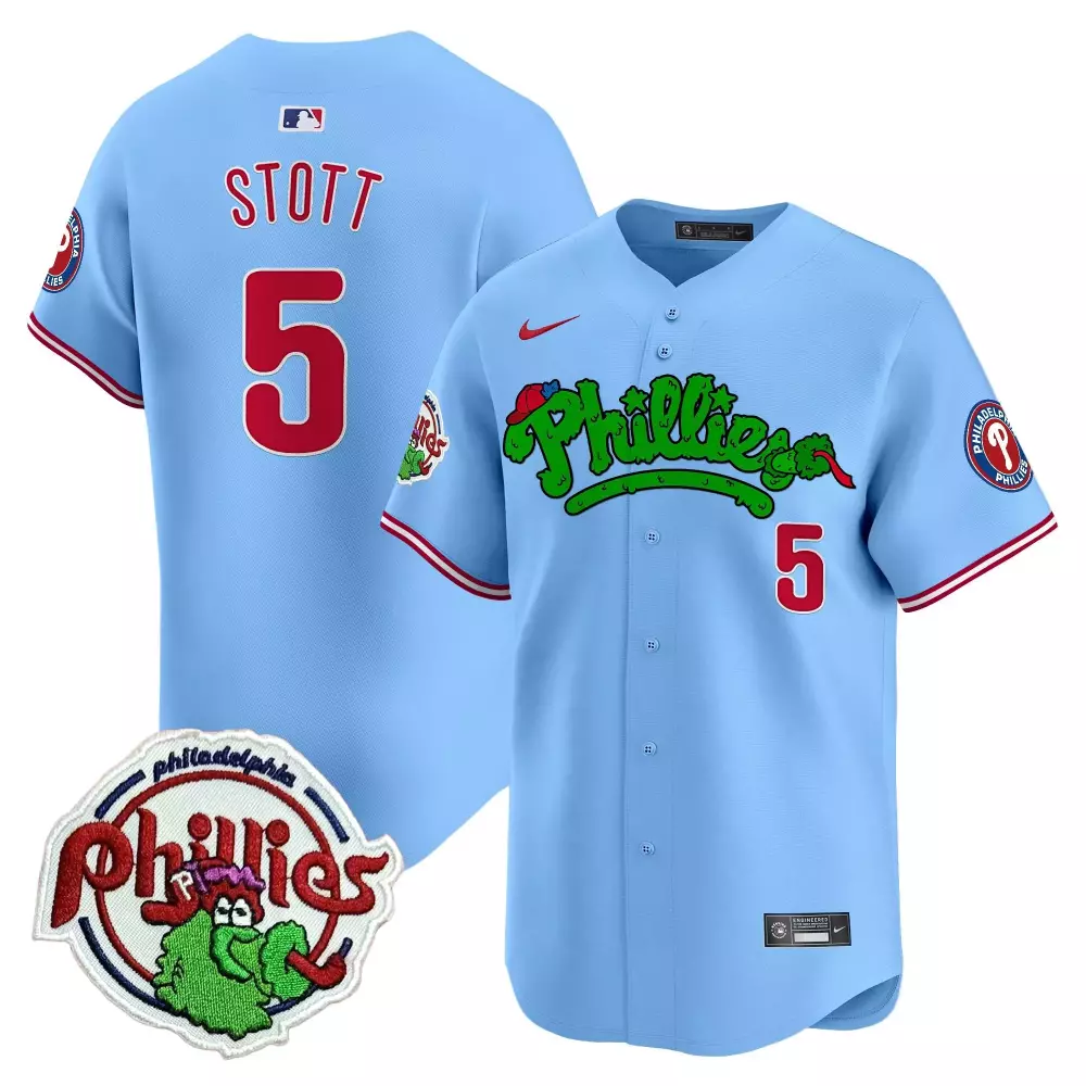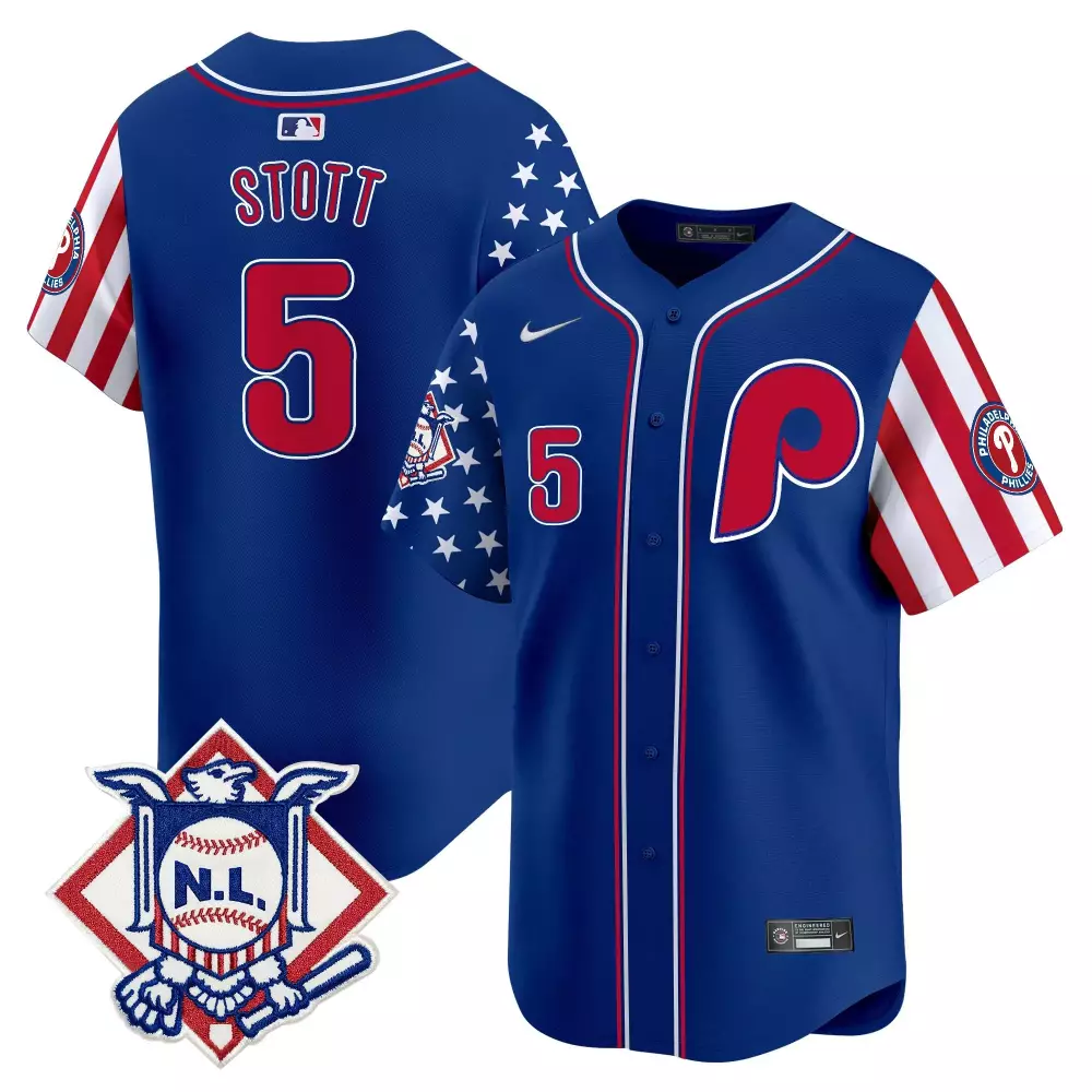 Stott 5 Philadelphia Phillies 2023 Vapor Jersey | Blue Phanatic Patch | Stitched Limited Edition Fan Gear | For Men, Women & Youth;Stott 5 Philadelphia Phillies 2023 Vapor Jersey | Blue Red Stars Stripes | Stitched Replica Fan Gear | For Men, Women & Youth;Stott 5 Philadelphia Phillies 2023 Vapor Jersey | Blue Red Stars Stripes 1 | Stitched Replica Fan Gear | For Men, Women & Youth;Stott 5 Philadelphia Phillies 2023 Vapor Jersey | Blue USA Patch | Stitched Replica Fan Gear | For Men, Women & Youth;Stott 5 Philadelphia Phillies 2023 Vapor Jersey | Blue With Patch | Stitched Replica Fan Gear | For Men, Women & Youth