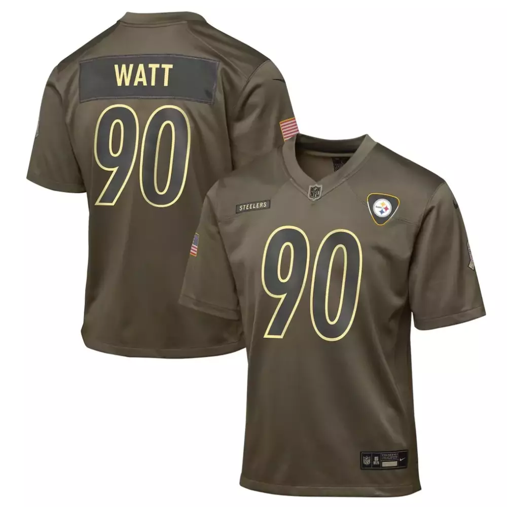T.J. Watt Pittsburgh Steelers Youth Inverted Game Jersey | Gold Nike Style | Limited Edition Fan Gear | For Men, Women & Youth;T.J. Watt Pittsburgh Steelers Youth Replica Jersey | Black Nike Style | Fan Gear for Young Fans | For Men, Women & Youth;T.J. Watt Pittsburgh Steelers Youth Salute to Service Jersey | Olive Nike Style | Limited Edition Fan Gear | For Men, Women & Youth;T.J. Watt Preschool Pittsburgh Steelers Black Game Jersey | For Kids | For Men, Women & Youth;T.J. Watt Preschool Pittsburgh Steelers Black Player Jersey | For Kids | For Men, Women & Youth