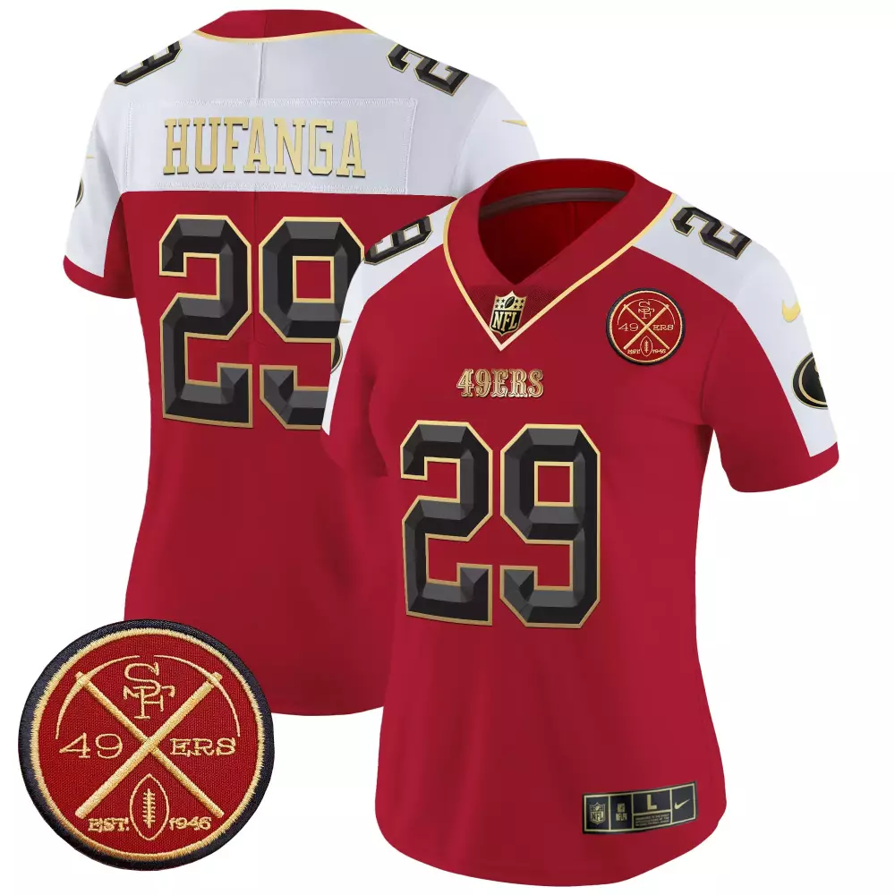 Talanoa Hufanga Alternate Women’s San Francisco 49ers Est1946 Patch Vapor Jersey | All Stitched | For Women & Youth;Talanoa Hufanga Alternate Women’s San Francisco 49ers Est1946 Patch Vapor Jersey V2 | All Stitched | For Women & Youth;Talanoa Hufanga Alternate Women’s San Francisco 49ers Faithful Super Bowl LVIII Patch Vapor Jersey | All Stitched | For Women & Youth;Talanoa Hufanga Alternate Women’s San Francisco 49ers Golden Gate Bridge Patch Vapor Jersey | All Stitched | For Women & Youth;Talanoa Hufanga Alternate Women’s San Francisco 49ers Levi’s Stadium 10th Season Patch Vapor Jersey | All Stitched | For Women & Youth