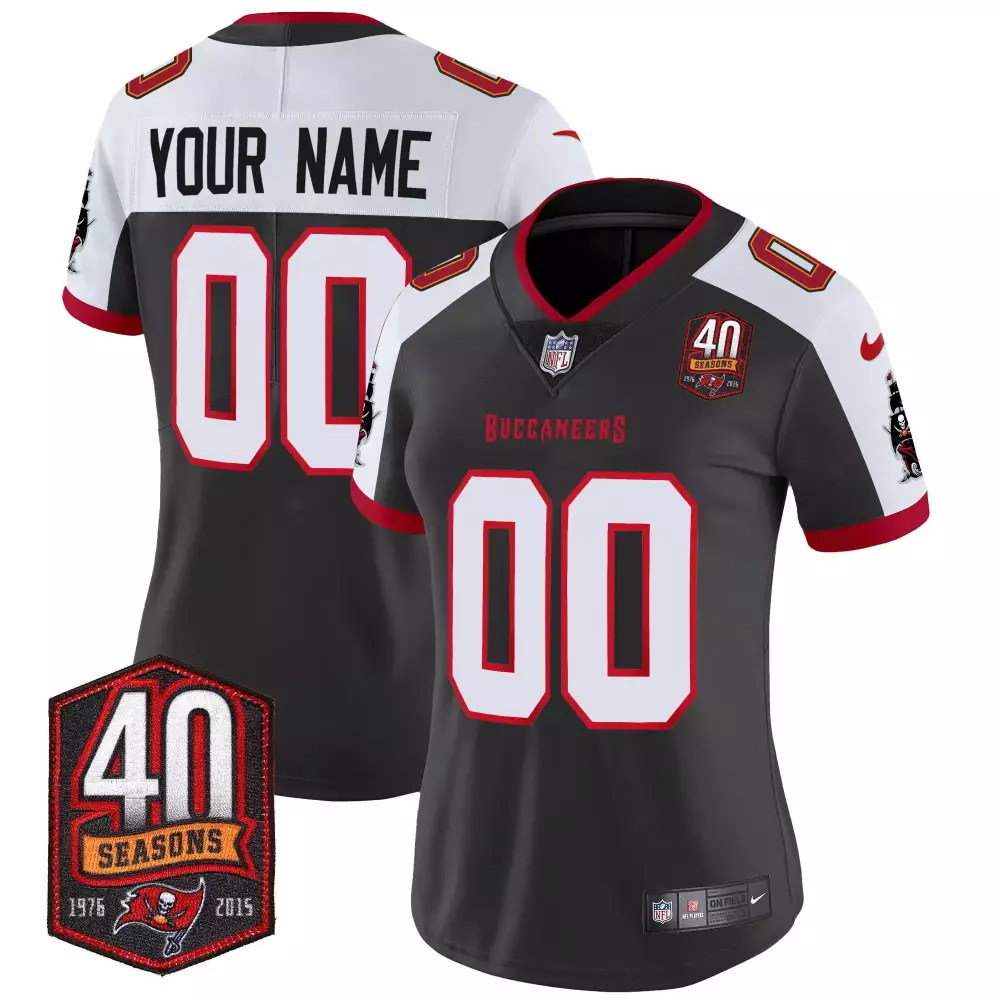Tampa Bay Buccaneers Women’s Alternate Custom Game Jersey | Pewter | Nike Fan Gear | For Men, Women & Youth;Tampa Bay Buccaneers Women’s American Style Vapor Limited Jersey | Custom Stitched Design | Perfect Fan Gear for All | For Women;Tampa Bay Buccaneers Women’s Black Alternate 2024 NFC South Champions Jersey | Gold Vapor Limited Edition | Fan Gear for Men, Women & Youth;Tampa Bay Buccaneers Women’s Black Alternate 40th Season Jersey | Stitched Vapor Limited Edition | Perfect Fan Gear for Men, Women & Youth;Tampa Bay Buccaneers Women’s Black Alternate Creamsicle 2024 NFC South Champions Jersey | Vapor Limited Edition | Fan Gear for Men, Women & Youth
