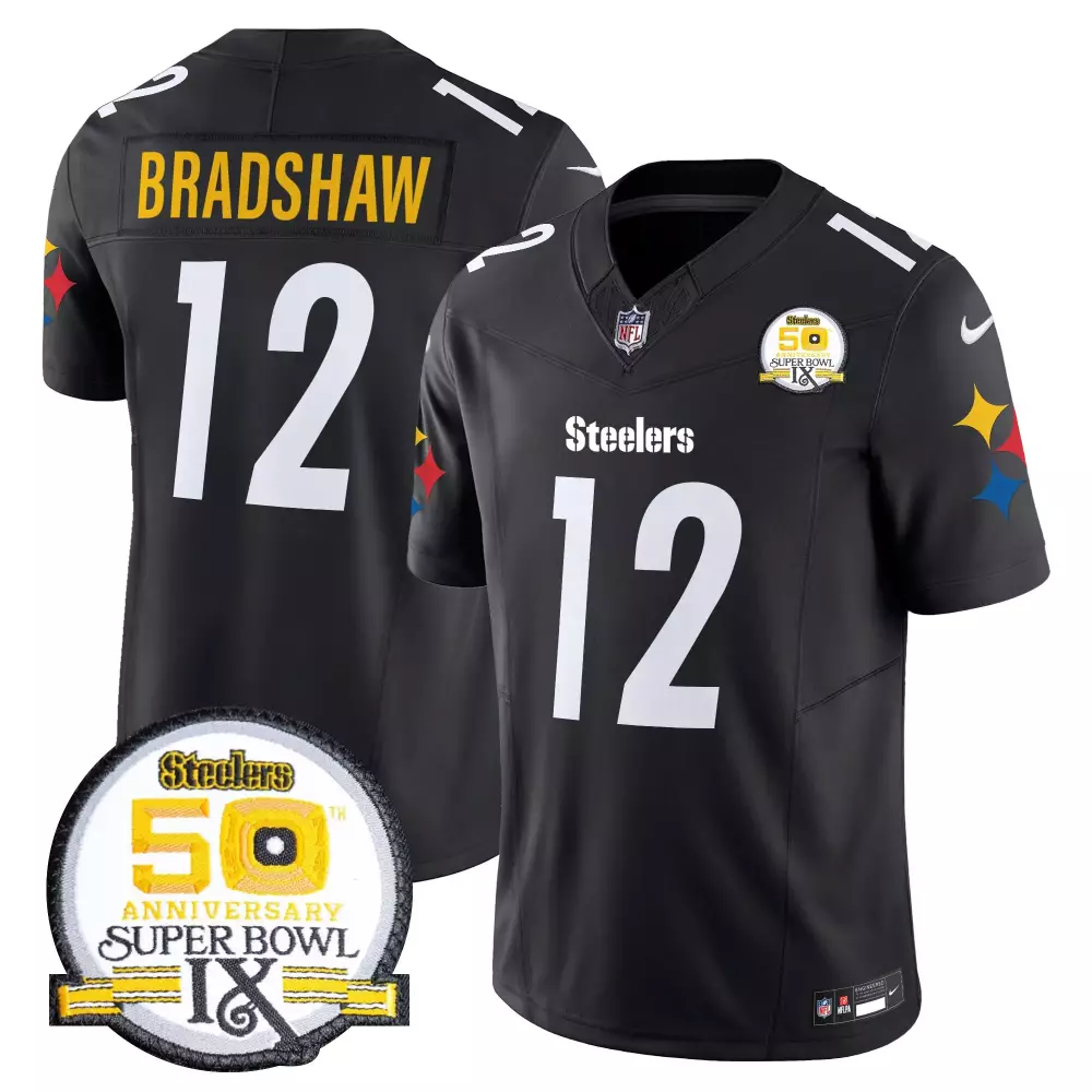 Terry Bradshaw Black Steelers Vapor Limited Jersey | 2024 Edition | For Men, Women & Youth;Terry Bradshaw Black Steelers Vapor Limited Jersey | 80th Anniversary Patch | For Men, Women & Youth;Terry Bradshaw Black Steelers Vapor Limited Jersey | Arch Smoke Design | For Men, Women & Youth;Terry Bradshaw Black Steelers Vapor Limited Jersey | For Men, Women & Youth;Terry Bradshaw Black Steelers Vapor Limited Jersey | Super Bowl IX Map Patch | For Men, Women & Youth