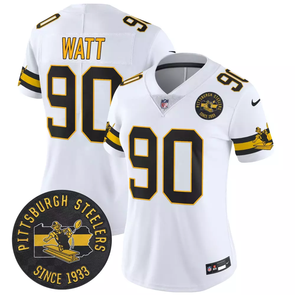 Terry Bradshaw Pittsburgh Steelers Women’s Throwback 1962 Vapor Limited Jersey | White | Est 1933 Patch | For Women & Youth;Thomas 73 Pittsburgh Steelers 2023 Stitched Vapor Jersey | Black with 32 Patch for Men, Women & Youth | Game Day Outfit;TJ Watt Pittsburgh Steelers 1933 Throwback Jersey | Women’s Vapor Limited Edition | All Stitched Fan Gear | For Men, Women & Youth;TJ Watt Pittsburgh Steelers 2024 Vapor Limited Jersey | Black | All Stitched | For Men, Women & Youth;TJ Watt Pittsburgh Steelers 2024 Vapor Limited Jersey | Gold | All Stitched | For Men, Women & Youth