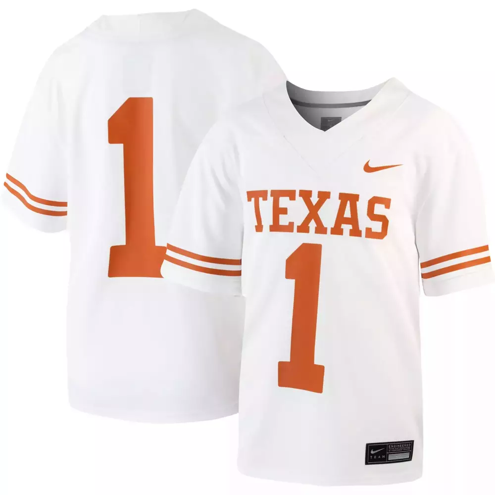 Texas Longhorns 1 Stitched Men’s Jersey 2024 | White 100 Years of Darrell K Royal | Limited Edition Fan Gear | For Men, Women & Youth;Texas Longhorns 1 Stitched Women’s Jersey 2025 | White with Name Patch | Fan Gear for All | For Men, Women & Youth;Texas Longhorns 1 Youth 2023 White Stitched Vapor Jersey | Perfect Gift Idea | For Men, Women & Youth;Texas Longhorns 2023 Custom Edition Stitched Vapor Jersey | Orange | Limited Edition Fan Gear | For Men, Women & Youth;Texas Longhorns 2023 Custom Orange Vapor Jersey | All Stitched Fan Gear | Perfect Gift Idea for Men, Women & Youth