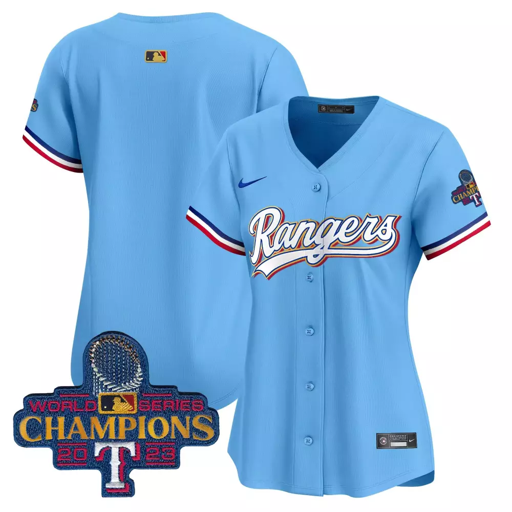 Texas Rangers 2023 Women’s Home World Series Champions Jersey | Limited Edition Stitched | For Women, Men & Youth;Texas Rangers 2023 Women’s Josh Jung 6 Light Blue Stitched Jersey | Name Patch | Fan Gear for Men, Women & Youth;Texas Rangers 2023 Women’s Light Blue All Stitched Jersey | Name Patch Champions | Fan Gear for Men, Women & Youth;Texas Rangers 2023 Women’s Light Blue All Stitched Vapor Jersey | World Series Champions Edition | Fan Gear for Men, Women & Youth;Texas Rangers 2023 Women’s Nike All Stitched Vapor Jersey | Champions Edition White | For Women & Youth