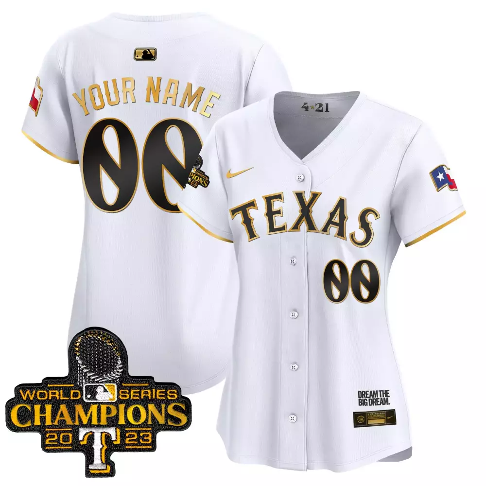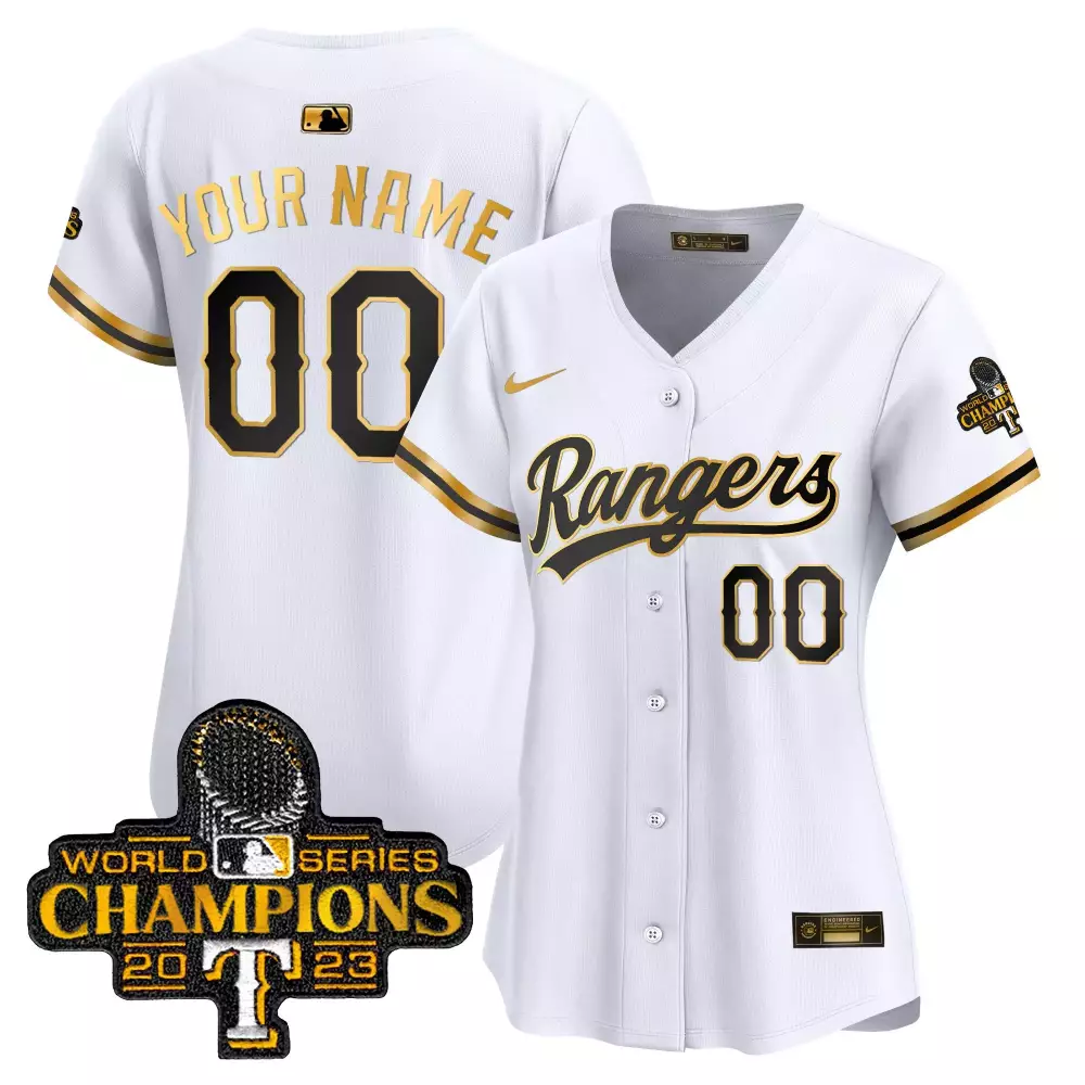 Texas Rangers 2023 Women’s White All Stitched Vapor Jersey | World Series Champions Edition | Fan Gear for Men, Women & Youth;Texas Rangers 2023 Women’s White Custom Jersey | Stitched with Name Patch | For Women & Youth;Texas Rangers 2023 Women’s White Vapor Premier Elite Jersey | Stitched Champions Edition | For Women & Youth;Texas Rangers 2023 Women’s White Vapor Premier Elite Jersey | Stitched with Champions Patch | For Women & Youth;Texas Rangers 2023 Women’s World Series Champions All Stitched Vapor Jersey | Fan Gear for Men, Women & Youth