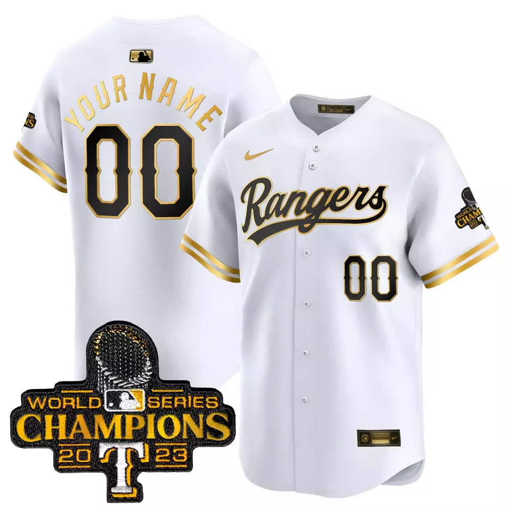 Texas Rangers 2023 World Series Champions Custom Jersey | White Stitched Texas State Patch Gold | Limited Edition Fan Gear | For Men, Women & Youth